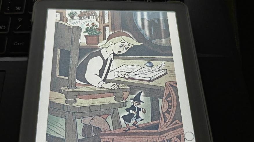В этой модели встроен сенсорный дисплей, диагональю 6 дюймов и разрешением 1448 х 1072. Это E-Ink экран поколения Kaleido 3. Он поддерживает передачу 16 оттенков серого цвета и 4096 разных цветов. Конечно, это не привычный LCD-дисплей с их насыщенностью и контрастностью, но для электронной книги в данном ценовом сегменте передача цветов на хорошем уровне. Ну, а если затрагивать заботу о зрении при длительном чтении, то такой тип экрана значительно более безопасен, ведь мы читаем как с книги, но с подсветкой.