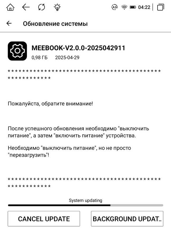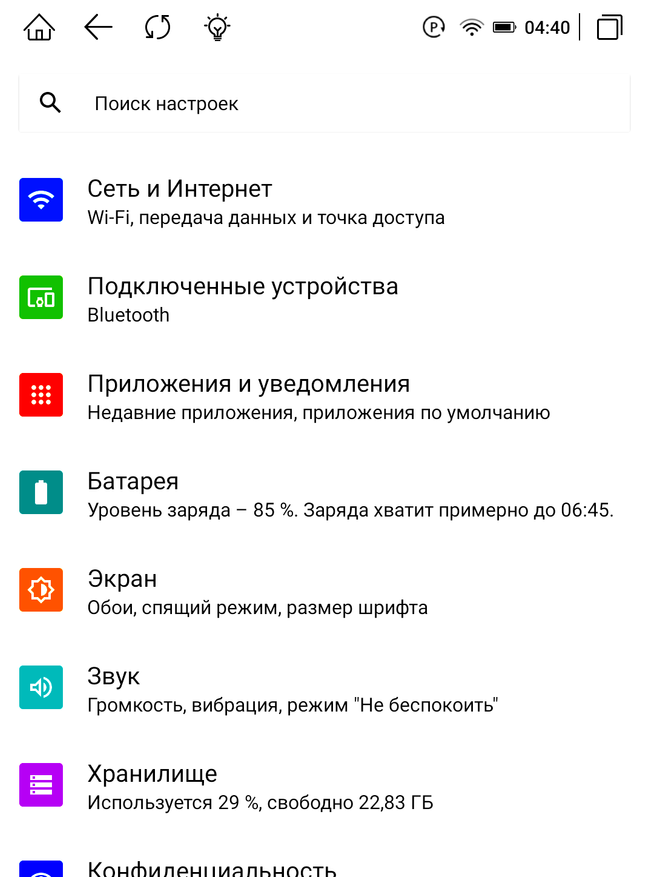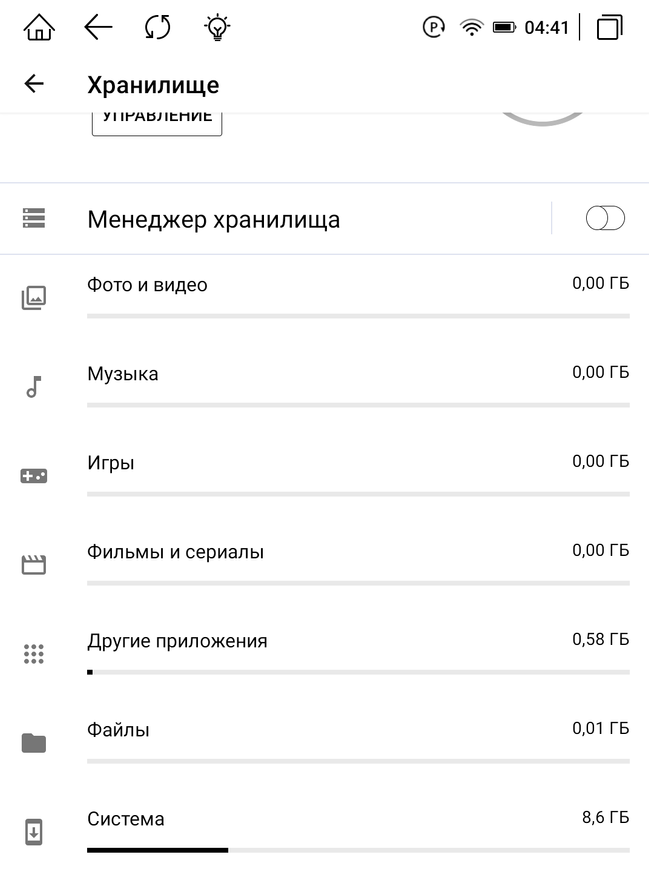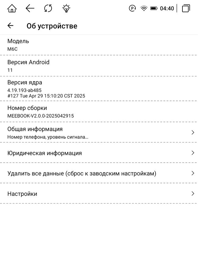 При запуске книжки придется немного подождать загрузки системы, прежде чем приступить к эксплуатации. MEEBOOK M6C работает на основе ОС Android 11, имеет достаточно широкую функциональность и понятный привычный интерфейс. В отличие от конкурентов, эта модель имеет возможность установки различных приложений, так как у нее есть доступ к Google Play/RuStore. Что позволяет, в свою очередь, использование любых необходимых приложений, например, браузер Chrome, Mail, Телеграм, Moon+ Reader и др. Кроме того, хочется отдельно отметить возможность установки приложений для чтения, таких как Литрес, Букмейт и MyBook, далеко не все производители электронных книг дают такую возможность. Устройство при подключении к Wi-Fi проверит прошивку книги и при необходимости запросит ее обновление по воздуху. Система занимает 8,6 ГБ из 32 ГБ постоянной памяти.