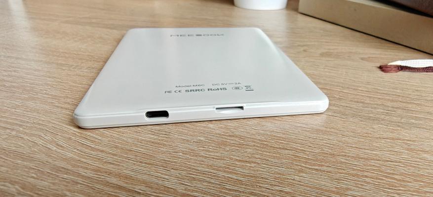 На нижнем торце устройства расположен слот для MicroSD карт (до 512 ГБ) и разъем Type-C, для зарядки устройства и проводного скачивания файлов. Остальные торцы электронной книги оставлены свободными.