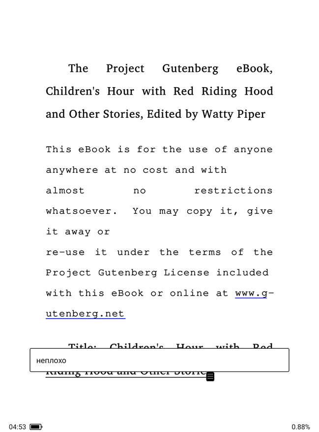 В эксплуатации книга показала себя удобным средством для чтения, а учитывая ее функциональность, она сможет стать любимым устройством для получения информации. По моему опыту, 6 дюймов — это максимально удобная диагональ для электронной книжки. С такого устройства удобно читать, она помещается просто в любую сумку или рюкзак, да и её легко назвать карманным вариантом. Благодаря малому весу, ее удобно держать в руке, а пользоваться быстро привыкаешь при помощи жестов.