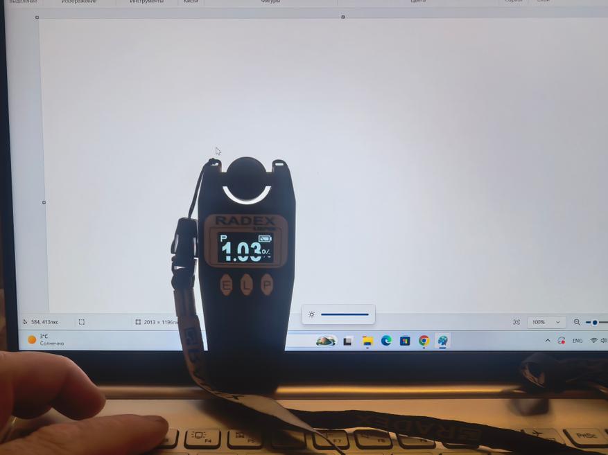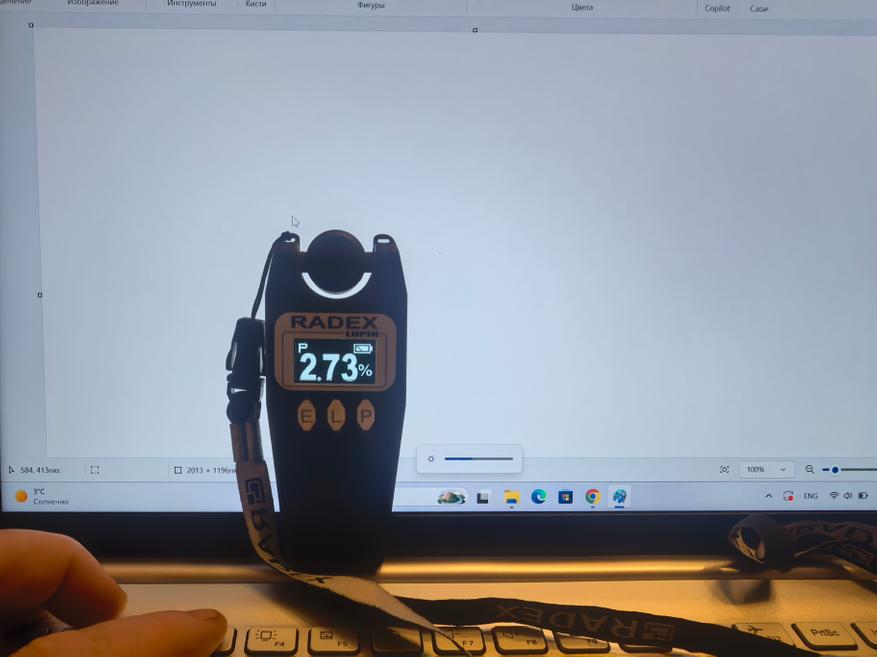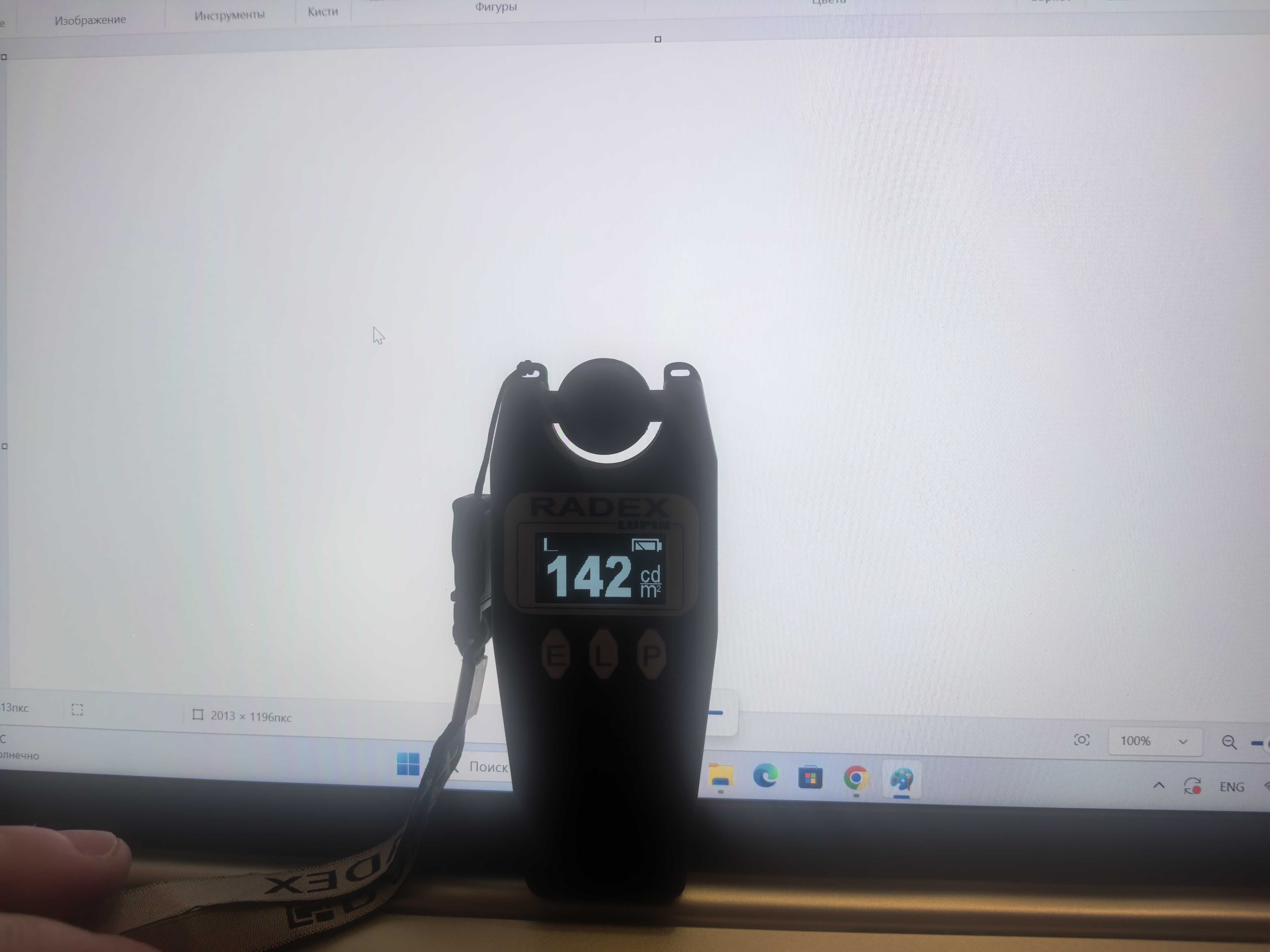 Сначала покажу результаты оценки глазами и подручным инструментом, люксметром Radex Lupin и камерой смартфона, а так же моими глазами. Интересно, что в недавнем обзоре при помощи Opple Light Meter человек измеряет якобы яркость в Люменах и получает цифру, большую чем заявлено в характеристиках: 500 Лм против 300 Лк. Опустим разную размерность, действительно, за чем она вообще нужна. Если в Люменах оценивают освещенность источника света, то яркость — в нитах или в Люксах. Использую Radex Lupin на 100% яркости подсветки видна цифра в 142 кд/м² (нит) при заявленных 250 нит. Как мне объяснили, разница в методиках измерения. Datacolor строит оценку по ANSI, Radex по ГОСТ, а Opple Light Meter вообще для ламп предназначен. Пульсаций у IPS-экрна нет. На двух последних фотографиях видны значения в 1 и 3% при 100% и 40% яркости, соответственно. Пульсации в 3% после опускаются до уровня 1,5%. На фотографии я просто запечатлел начальное значение. IPS-экран более безопасен для глаз.