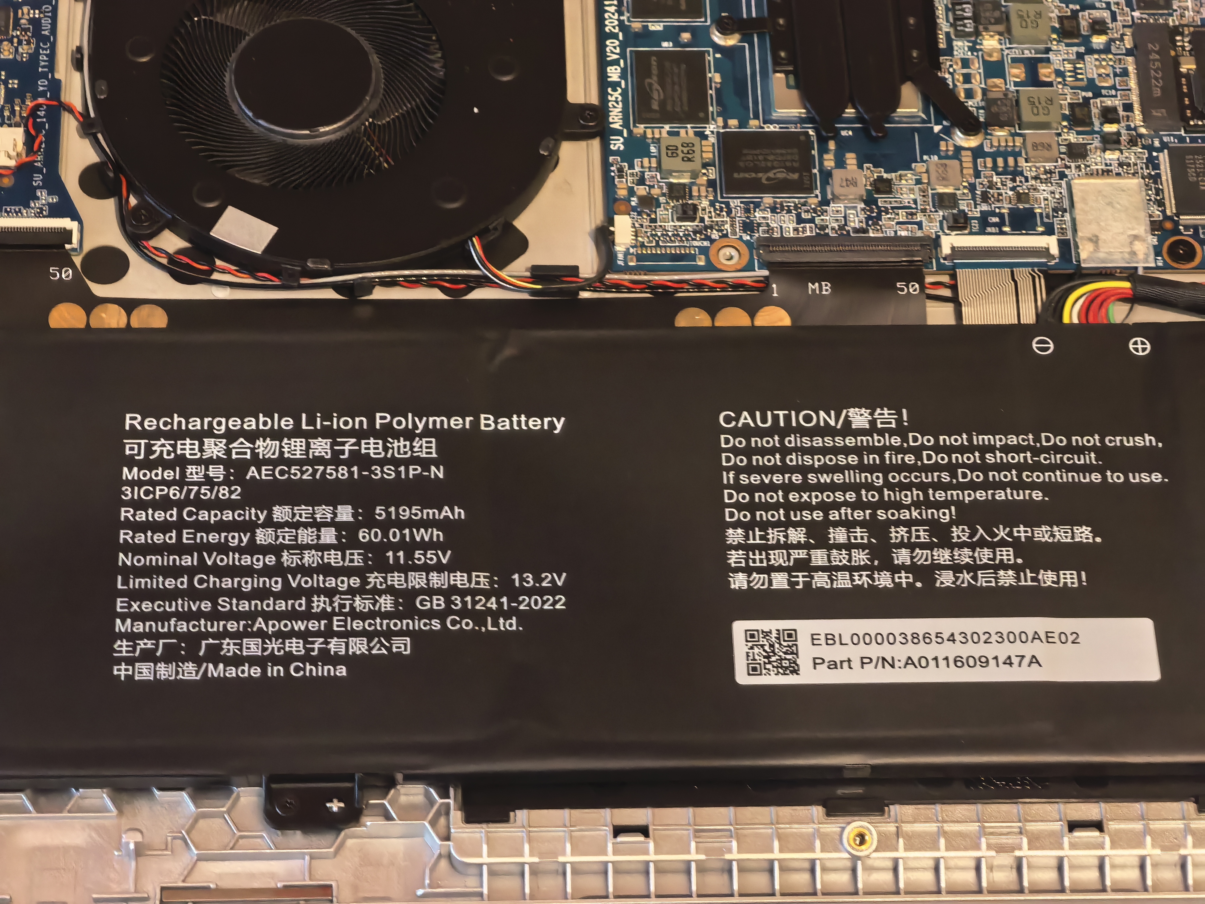 Емкость аккумулятора 5195mAh при напряжении в 11,55V, что эквивалентно 60,01Wh.
