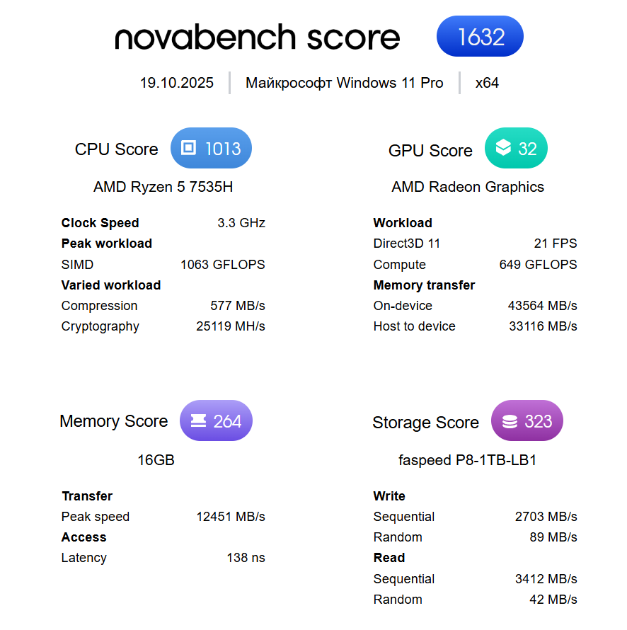 В Novabench цифра получилась равно 1632 баллам.