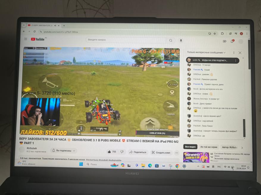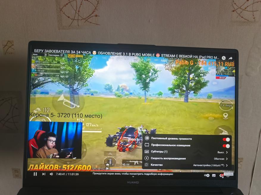 Модельный ряд D16 у HUAWEI принадлежит к классу средних, обладает FHD-дисплеем с частотой 60Гц, небольшим, но в принципе достаточным количеством портов и имеет несколько конфигураций в зависимости от процессора и объема памяти. Автономность в этом классе — важный аспект для меня, поэтому протестировал время разряда через просмотр YouTube в 1080р при 60% уровне яркости. В итоге получилось, что аккумулятора хватило на 7,5 ч. По второй фотографии ниже видно (правый нижний угол), что оставалось 6% и 30 минут работы (которые не учтены в 7,5 ч).