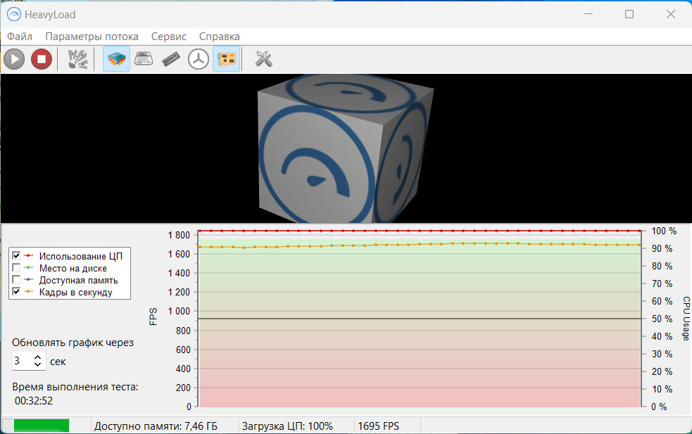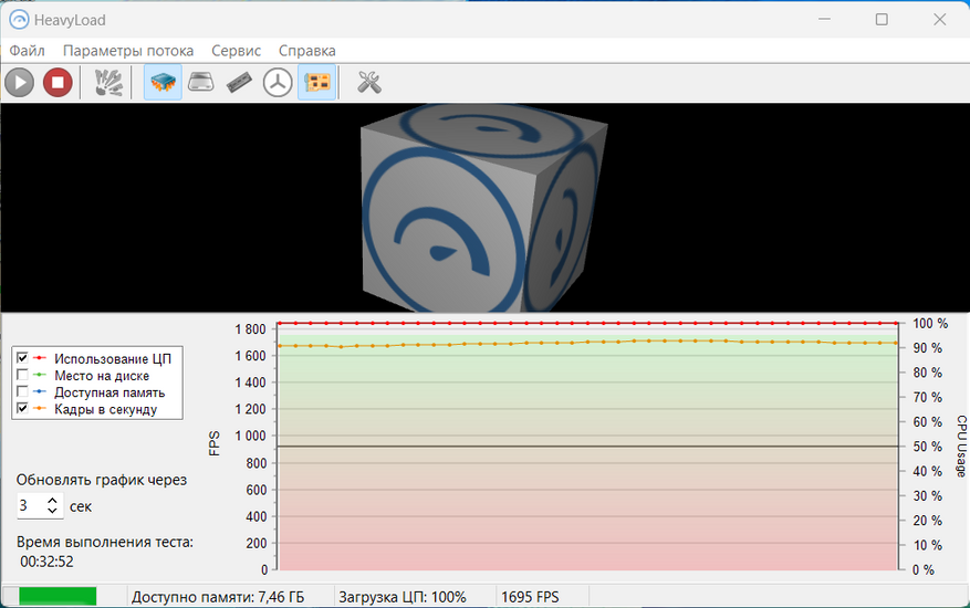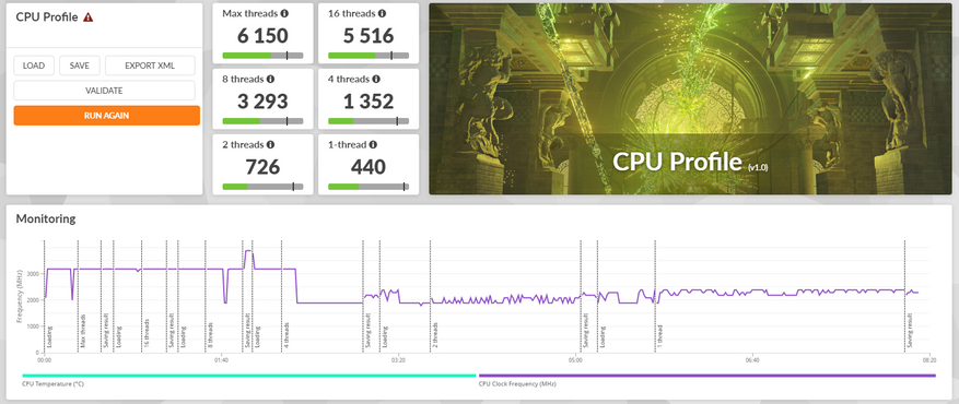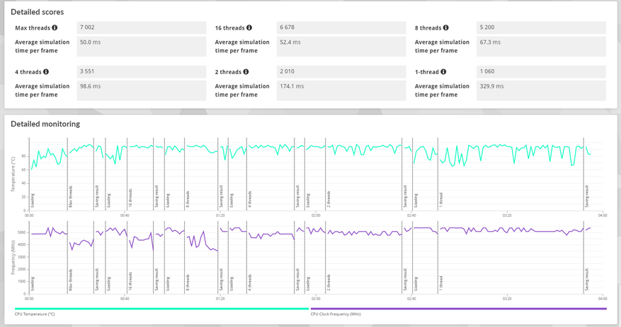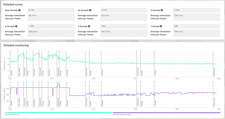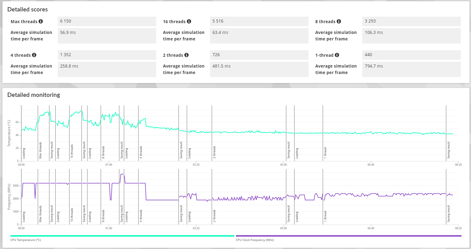 Итог по тесту 3DMark производительности процессора больше, чем в «Сбалансированном» на примерно 17% в тестах на максимальное количество потоков, на 16, на 8 и на 4 потоков, в случае двух и однопоточного результатов — на половину.