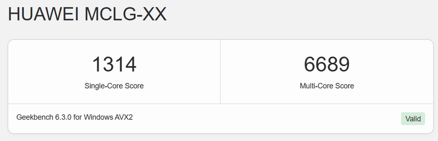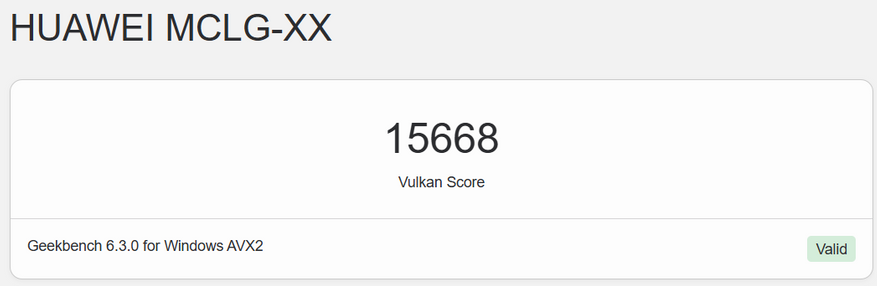 В одно и многоядерных Geekbench-тестах результат — 1314 и 6689 баллов, в тесте OpenCL и Vulkan — 16621 и 15668 баллов, соответственно. Ninkear N14 Pro номинально набирает больше только в одноядерном тесте — 1342 и то, полученное значение находится на уровне погрешности, поэтому по факту цифры можно считать одинаковыми. В остальных тестах у N14 Pro значения примерно на 50% меньше, чем у MateBook D16 2024.