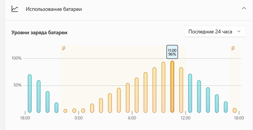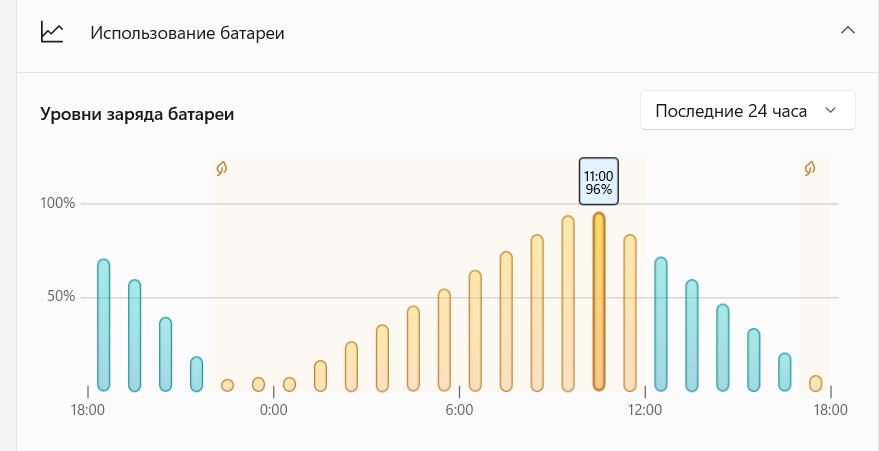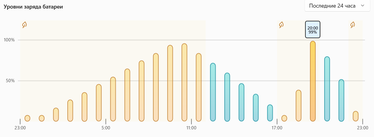 Ниже привел скриншоты из отчёта Windows по потреблению энергии компонентами ноутбука в активном состоянии.
