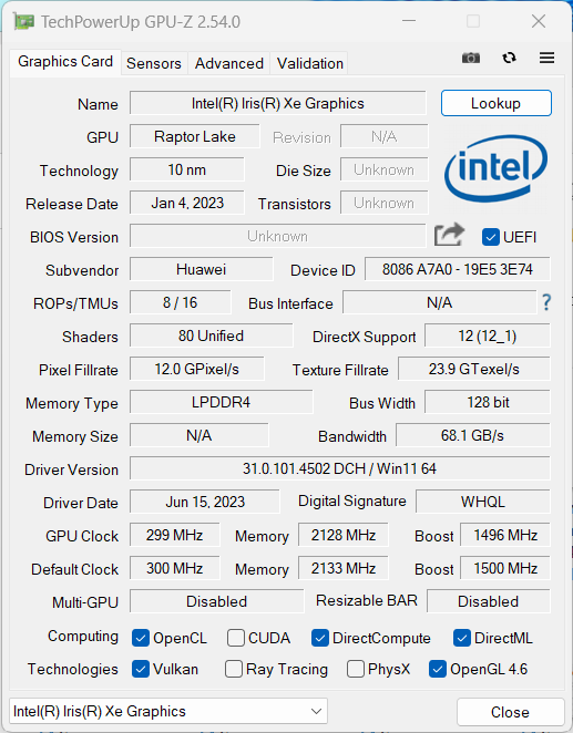 | Графика: | Интегрированная графика Intel Iris Xᵉ, 1,5 ГГц (80 блоков) |