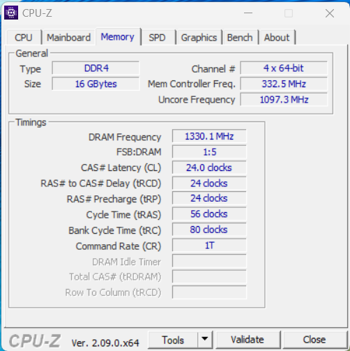 | RAM: | 16 (4х4) ГБ LPDDR4Х-4266 (распаяна на плате), четырехканальный режим (соответствует двухканальному режиму DDR4), тайминги 32-34-34-79 CR1 |