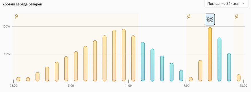 Полученная у меня автоность, как по тестам, так и (не представлена) в реальном использовании мне понравилась. Дома можно пользоваться ноутбуком от сети. Если делаю нетребовательные задачи, то отключаю D16 от розетки или повербанка. Помню, когда аккумуляторы в ноутбуках были съёмными, мой постоянно был подключен к сети и работал исключительно от нее. Сейчас для увеличения срока службы аккумулятора постоянно держать его подключенной в сеть не хочу. Есть, конечно, опция по поддержанию аккумулятора в рабочем состоянии через ограничение скорости зарадя по достижению 80%, но лишним дополнительная забота для меня никогда не будет.