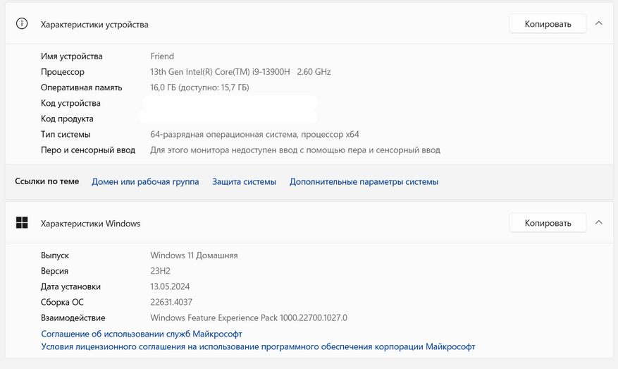 Относительно модели MateBook D16 2023 обновление в 2024 г получилось спорным, но имеющим право на жизнь: убрали порты, урезали скорость HDMI, уменьшили разрешение камеры, но теперь верхняя часть раскрывается на 180⁰. Это, как можно догадаться, повлияло на цену, не дав ей увеличиться («сохранили цену, но теперь вес макарон в упаковке не 500 г, а 400 г»). Я не на столько профессиональный и гиковский пользователь ПК, чтобы покупать в текущем году прошлогодную модель, несмотря на ее бумажное превосходство. Лучше я не буду о грустном, но есть одно преимущество в D16 2024 над моделями 2023-2022 гг — в ней стоит два кулера с тонкими лопастями, что, по результатам моего использования, вызвало удивление, так как их практически не слышно, и корпус не ощущается горячим.