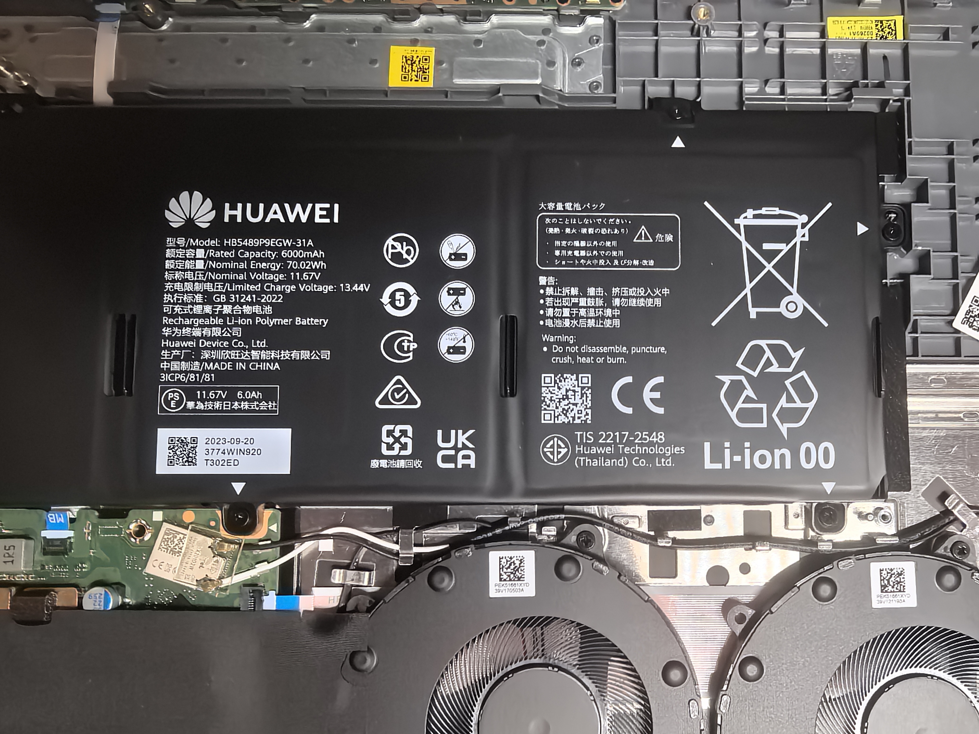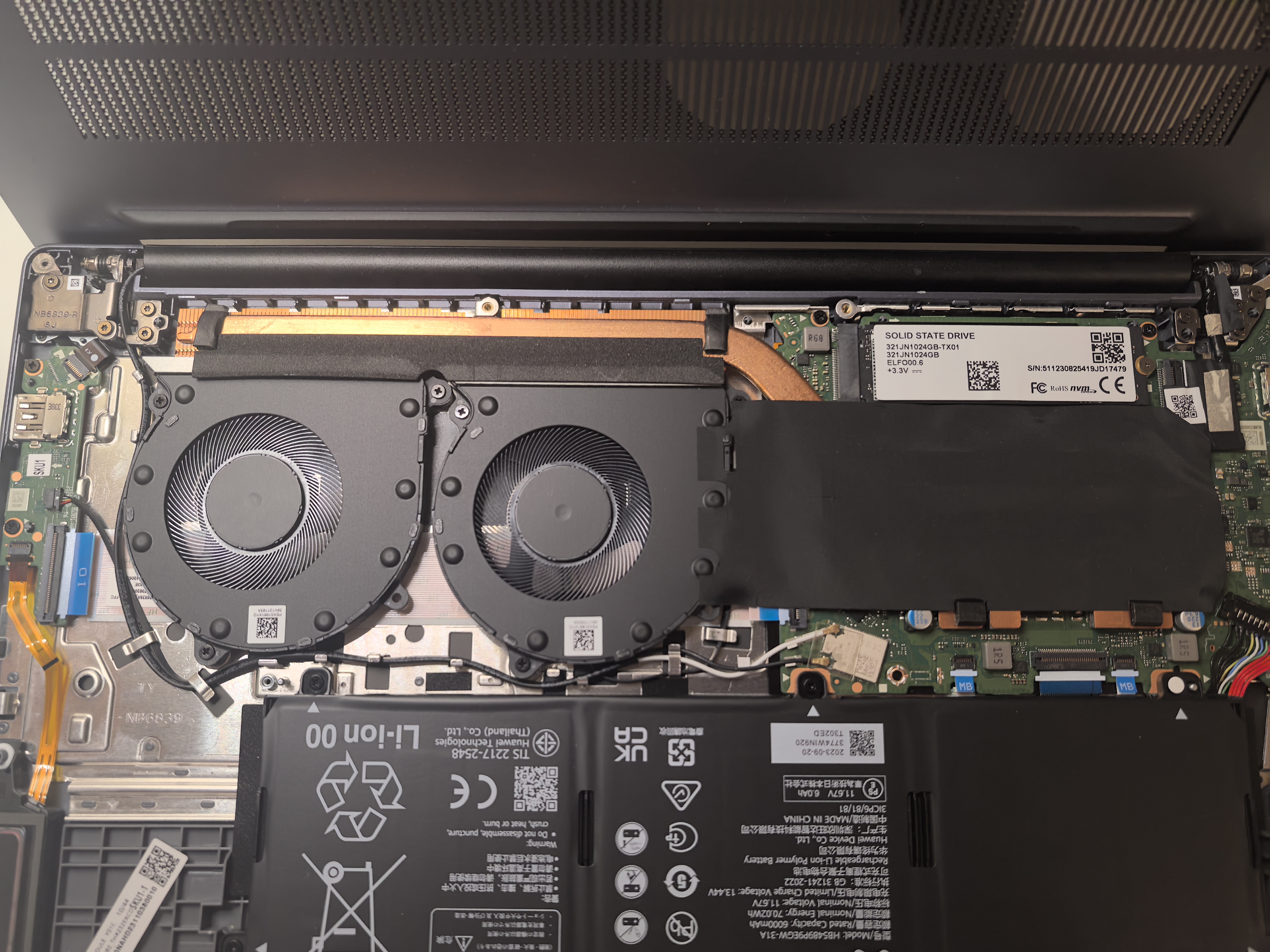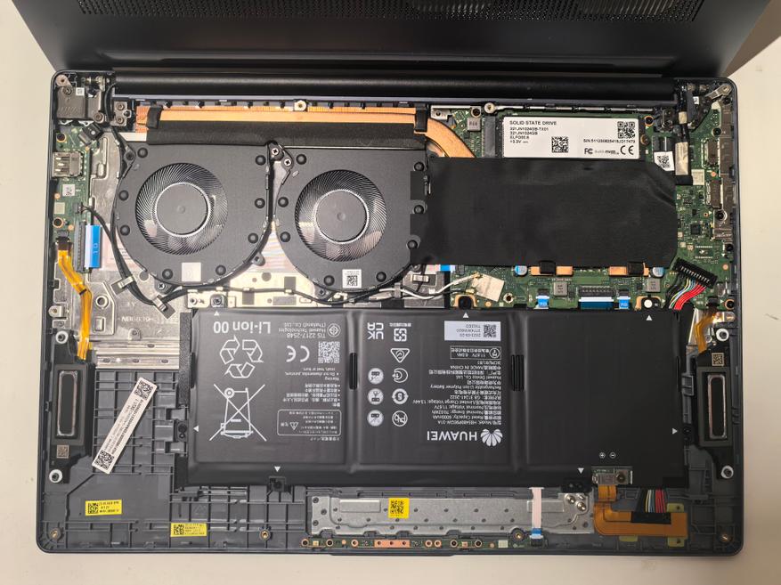 На следующих фотографиях показал отдельно SSD, систему охлаждения с двумя вентиляторами и медной трубкой и аккумулятор.