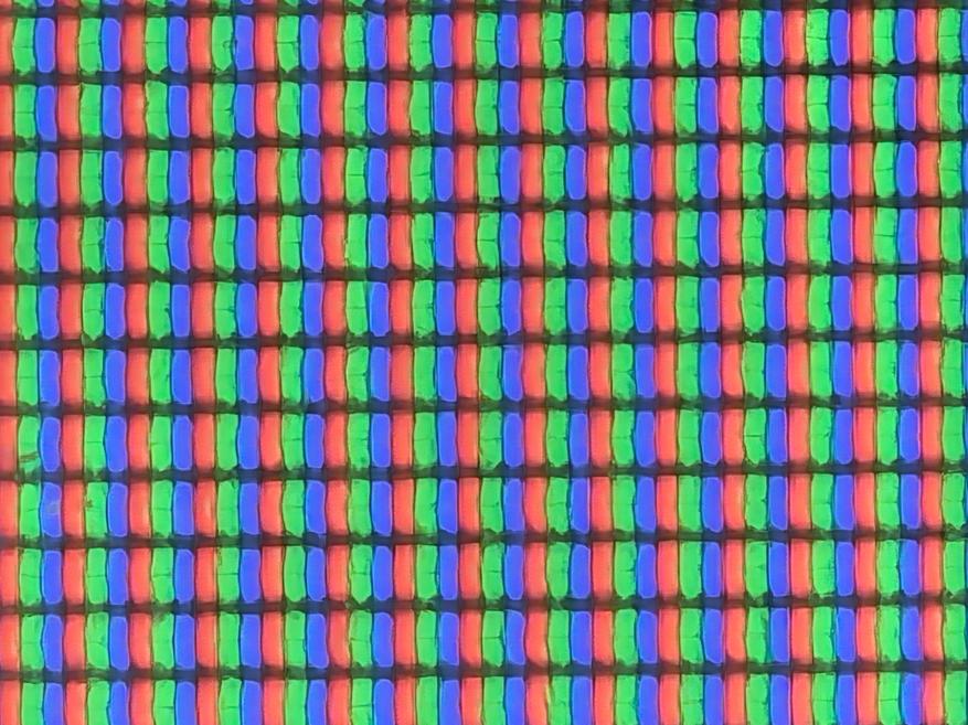 На следующих фотографиях показал, как выглядит черный экран и структура пикселей IPS-матрицы. Засветка по углам — частая характеристика такого типа дисплея.