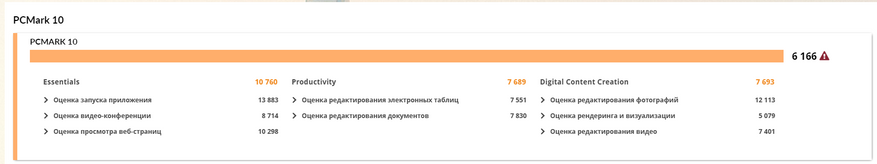 Итог по PC Mark — 6166. В «Сбалансированном» результат ниже — 3648.