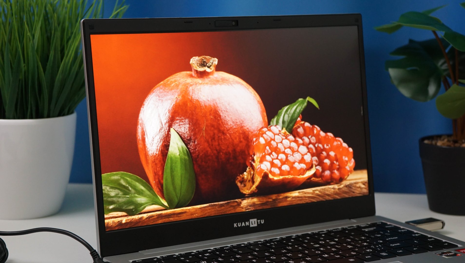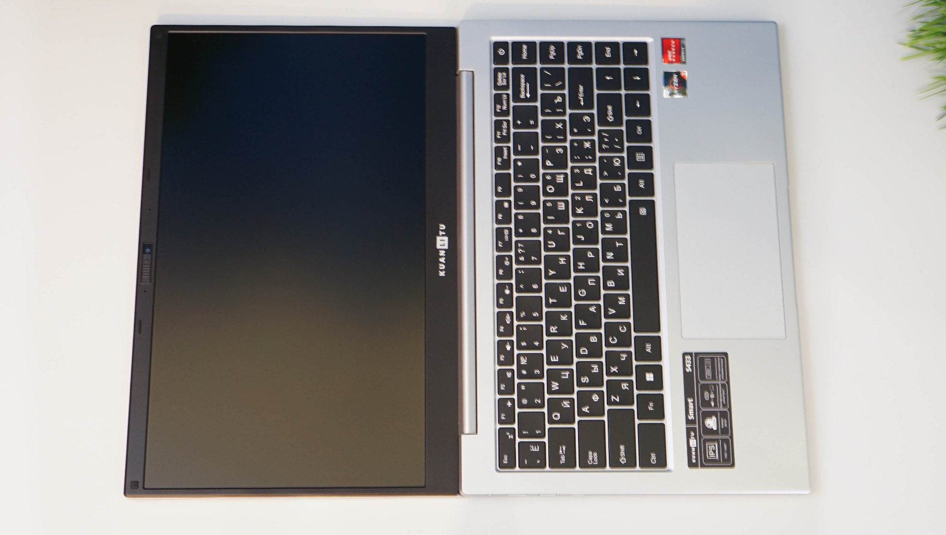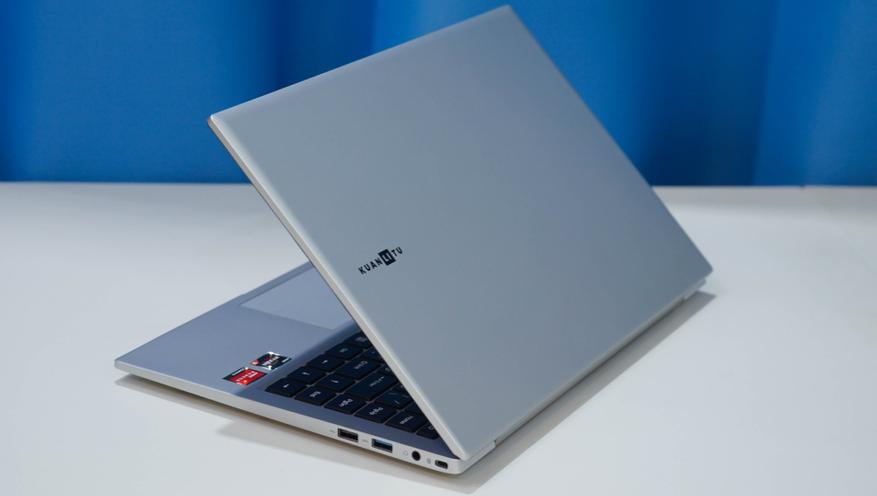 Основные плюсы модели KUANLITU S433 — это его компактные габаритные размеры, в частности, тонкий корпус, а также небольшая масса (до полутора килограммов). С таким 14-дюймовым экраном, ноутбук без проблем можно положить как в сумку, так и в рюкзак, что делает его идеальным компаньоном в поездках и командировках. Данная модель оснащается современным «железом» AMD Ryzen. Экран — полноценный FullHD с IPS матрицей и антибликовым покрытием. Корпус — прочный, из металлического (алюминиевого) сплава. Дизайн скромный и не бросается в глаза — на задней крышке только один логотип «KUANLITU», то есть такой ноутбук вполне будет уместен в офисе.