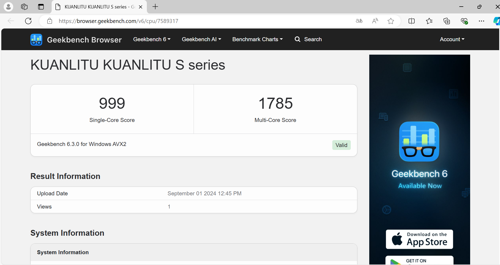 | Geekbench CPU Test (single/multi) | 999 / 1 785 |