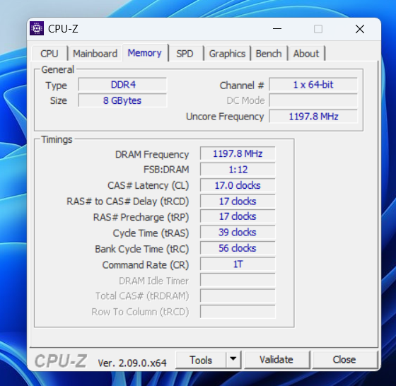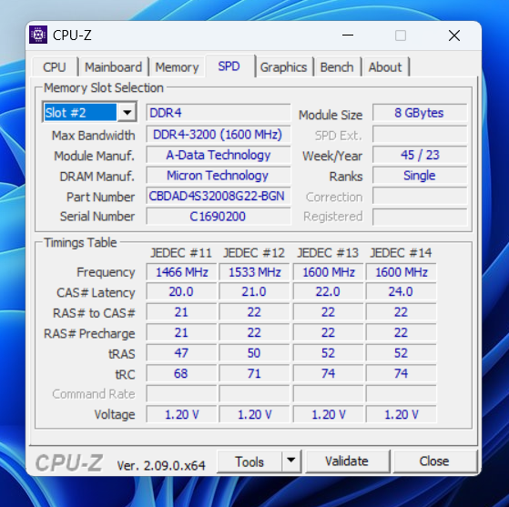 | Оперативная память A-DATA DDR4-3200 CBDAD4S32008G22-BGN (всего один модуль на 8 Гб, второй слот свободный). |