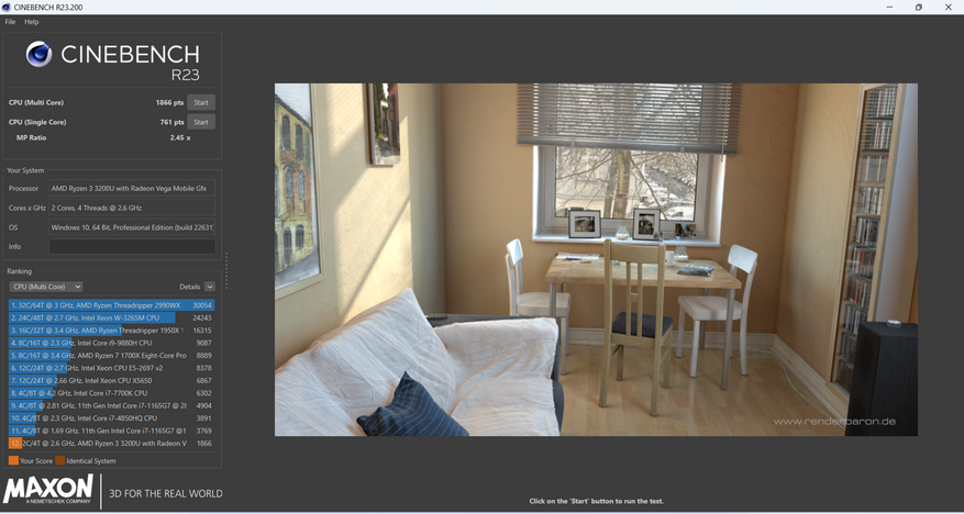 | Cinebench R23 (Multi Core) | 1 866 |