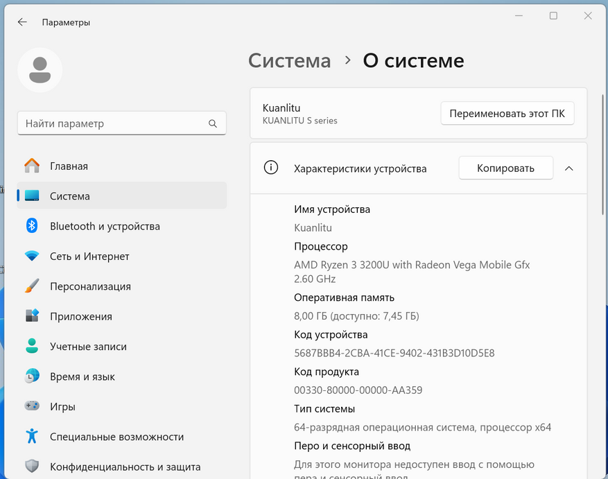 | Процессор | AMD Ryzen 3 3200U |