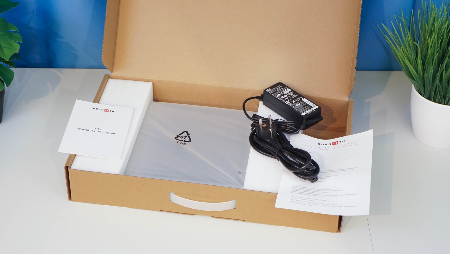 Итак, ноутбук, который я использую в качестве рабочего инструмента в поездках и для удалённого доступа во время отдыха. Модель KUANLITU S433 и вполне заменит простой офисный ПК или же будет достойной альтернативой устаревшему компьютеру или ноутбуку. Данную модель вполне можно использовать и для открытия своего пункта выдачи, магазина или для оснащения офиса, в качестве временного или подменного ноутбука. Такая модель подойдёт и для учёбы. В комплектации предусмотрен сетевой блок питания на 65 Вт, но предусмотрена возможность подзарядки от USB-C источников.