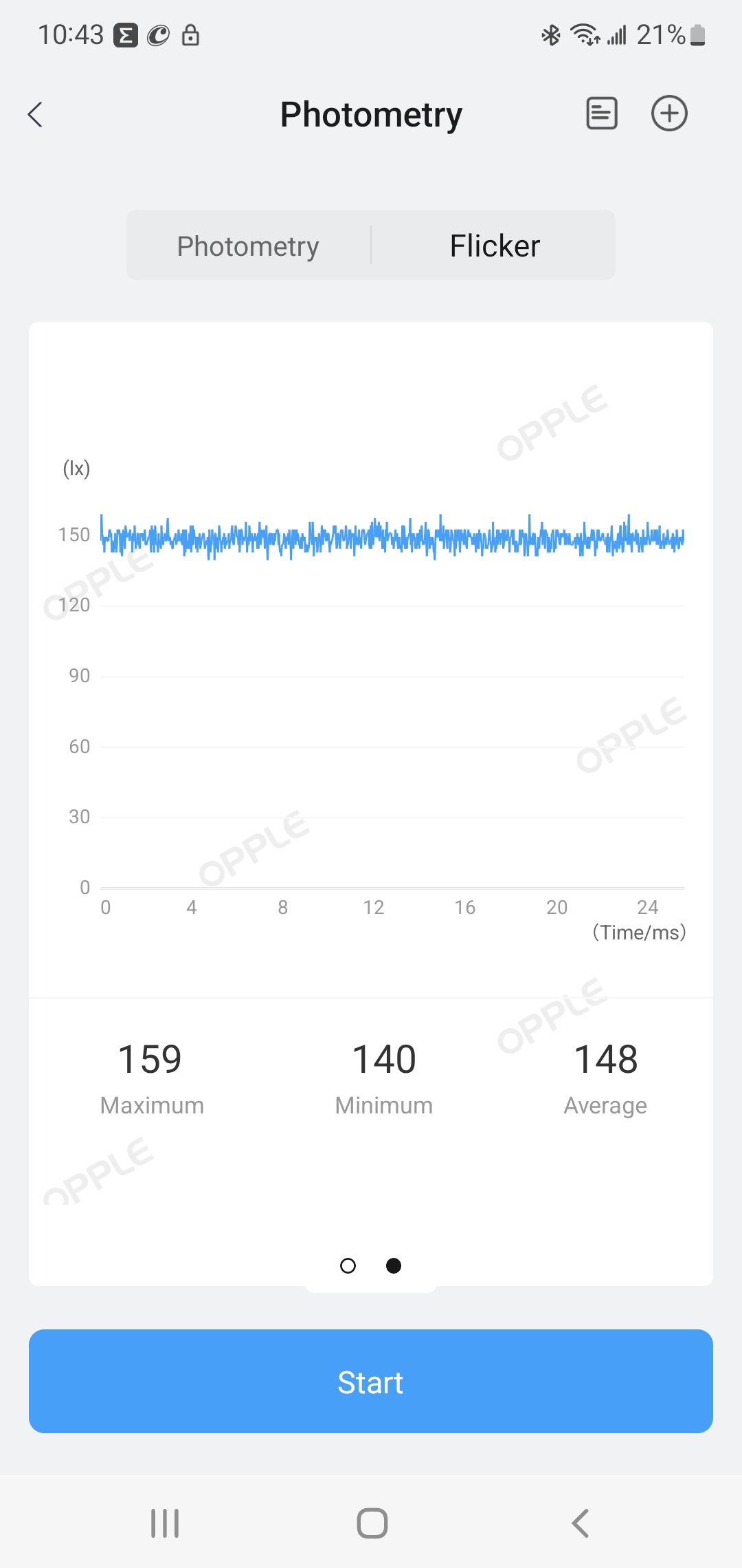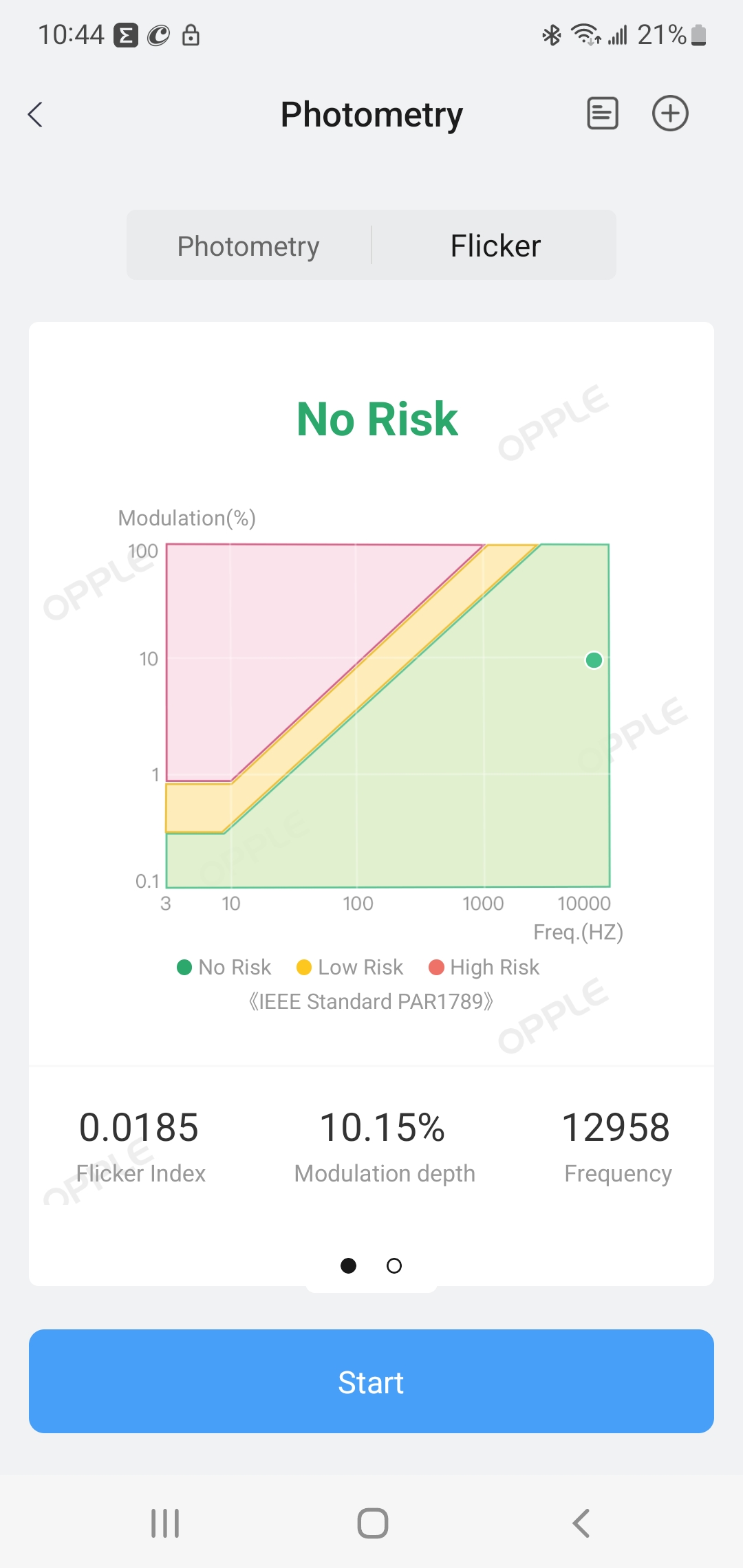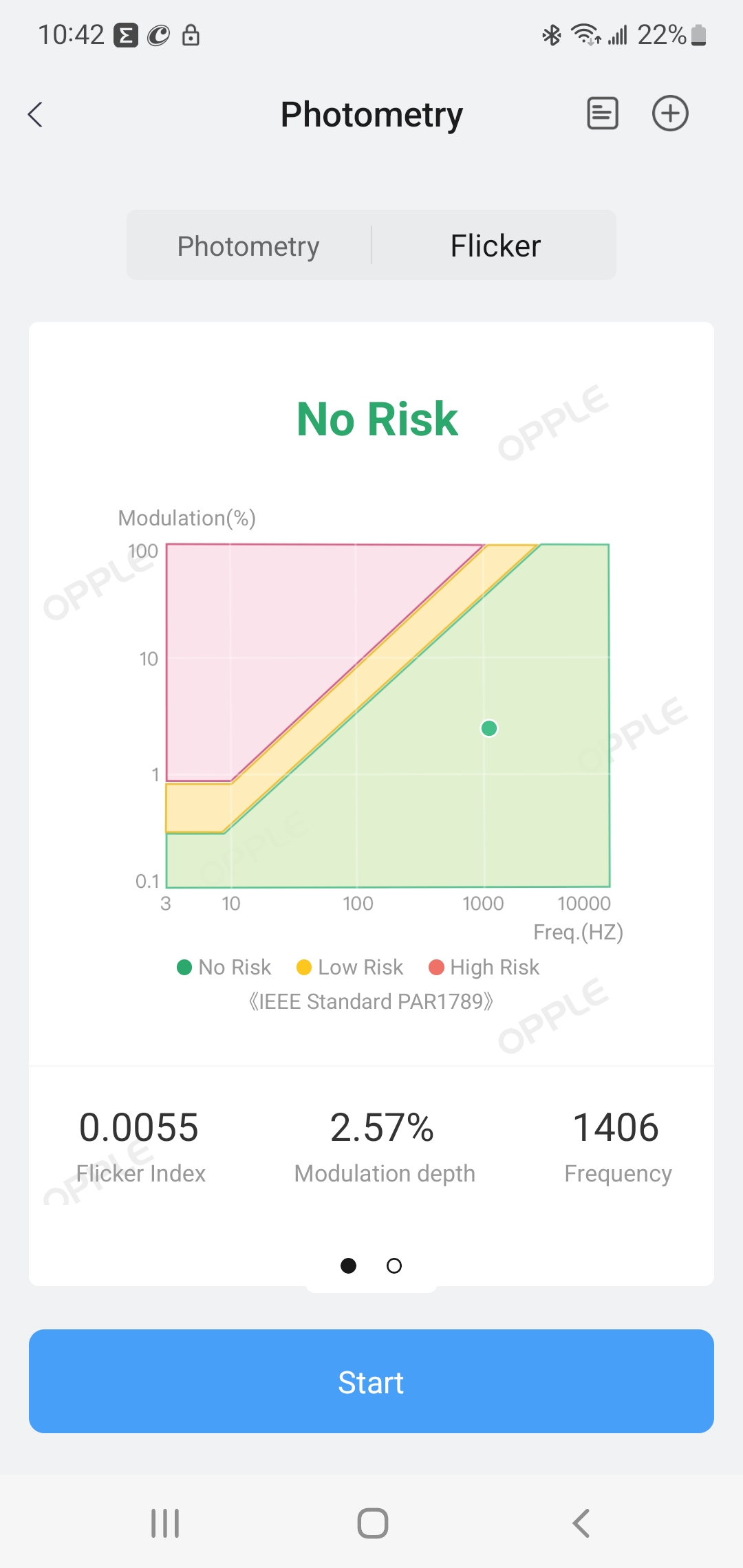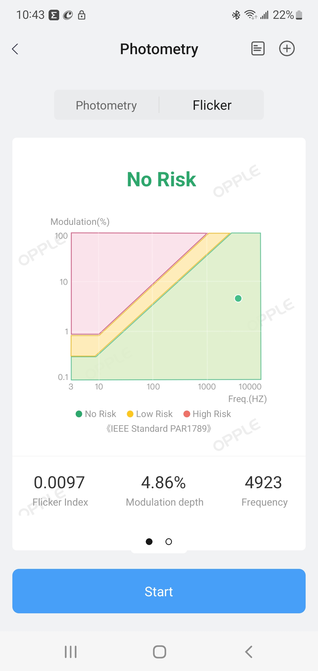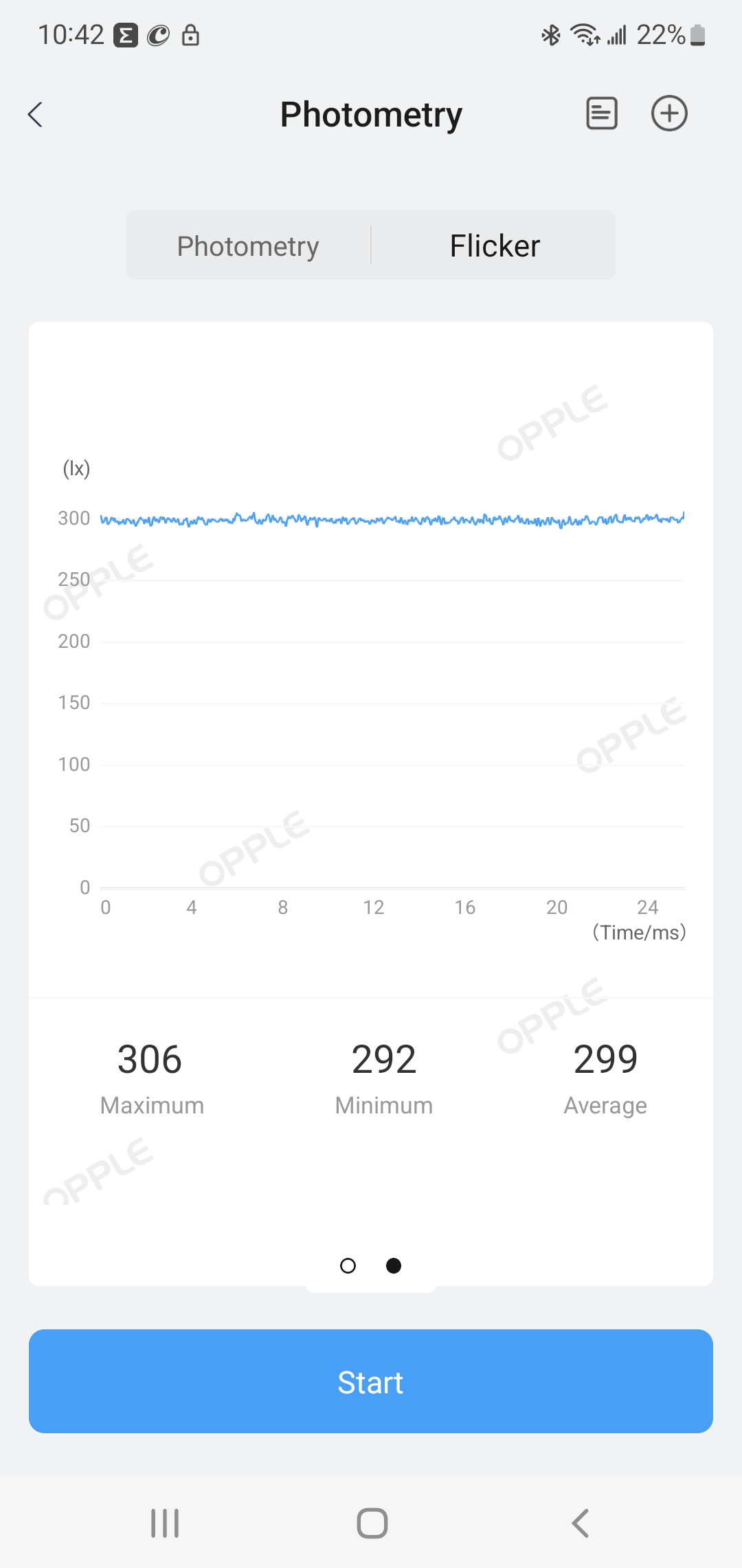 На любых уровнях яркости коэффициент пульсаций находится на минимальных значениях.