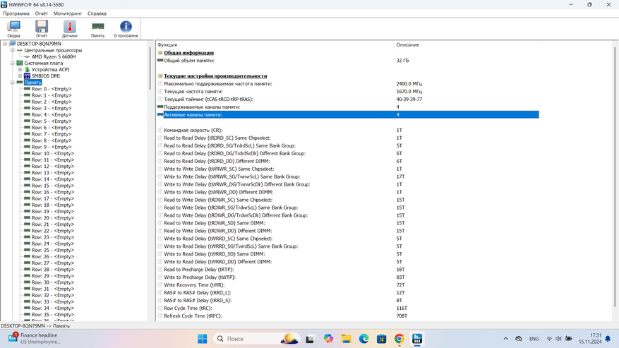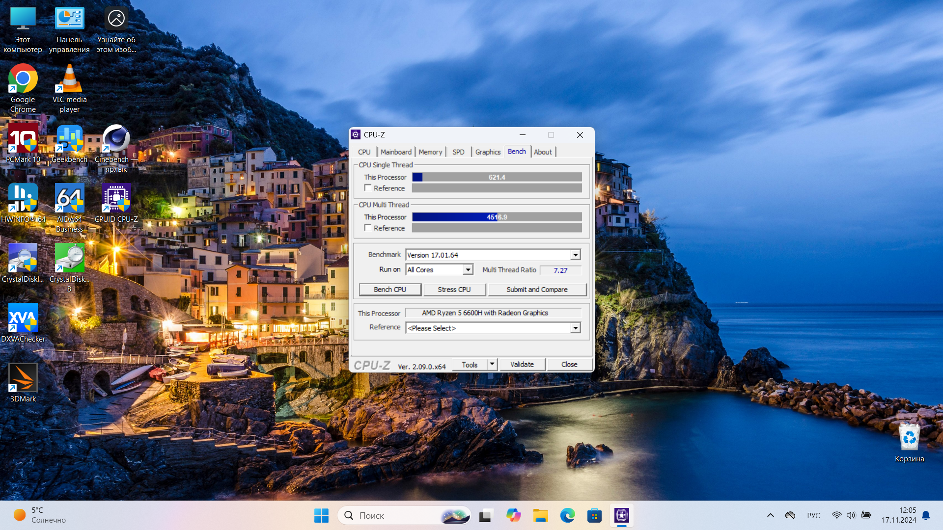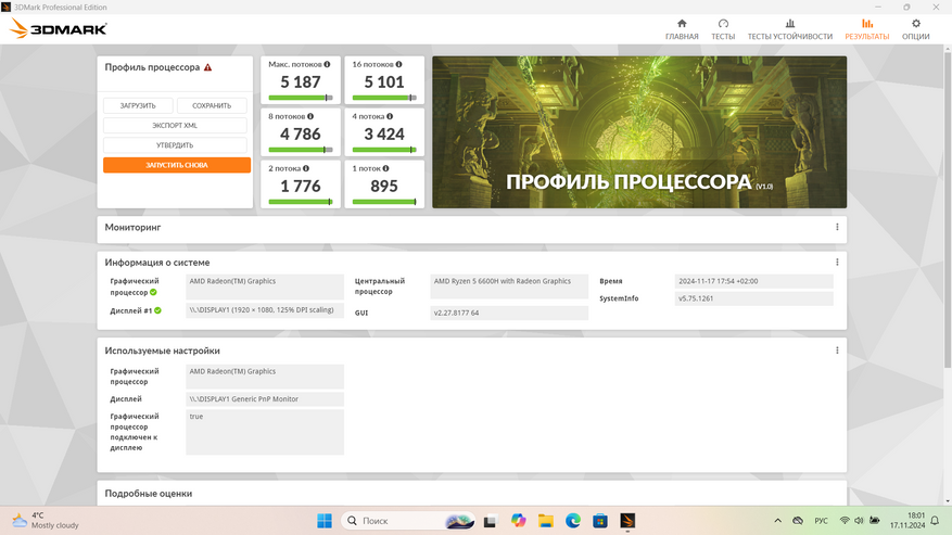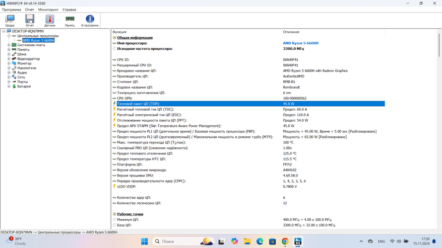 | Процессор | AMD Ryzen 5 6600H, 6 ядер и 12 потоков с максимальной частотой 4,5 GHz |