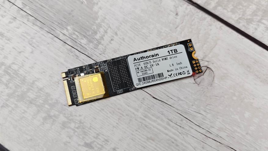 NVMe накопитель на 1 TB от Authorain. Чипы памяти без маркировки, контроллер SM2263XT с поддержкой PCIe Gen3 x4.