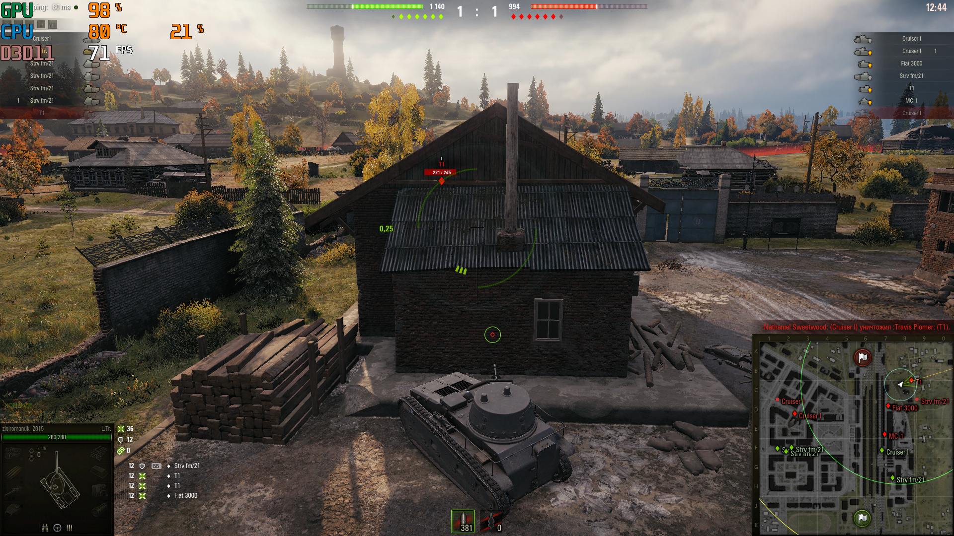 После всего, что я увидел в синтетике, мне захотелось поиграть. Установив World Of Tanks (полноценную компьютерную версию) я выставил Full HD и по привычке выбрал низкие настройки графики. Ну, а чего ожидать от встройки, подумал я и запустил игру. Увидев средние 300 FPS я мягко говоря офигел и это при том, что графический ускоритель даже не уперся в свой потолок (80 — 85% загрузки).