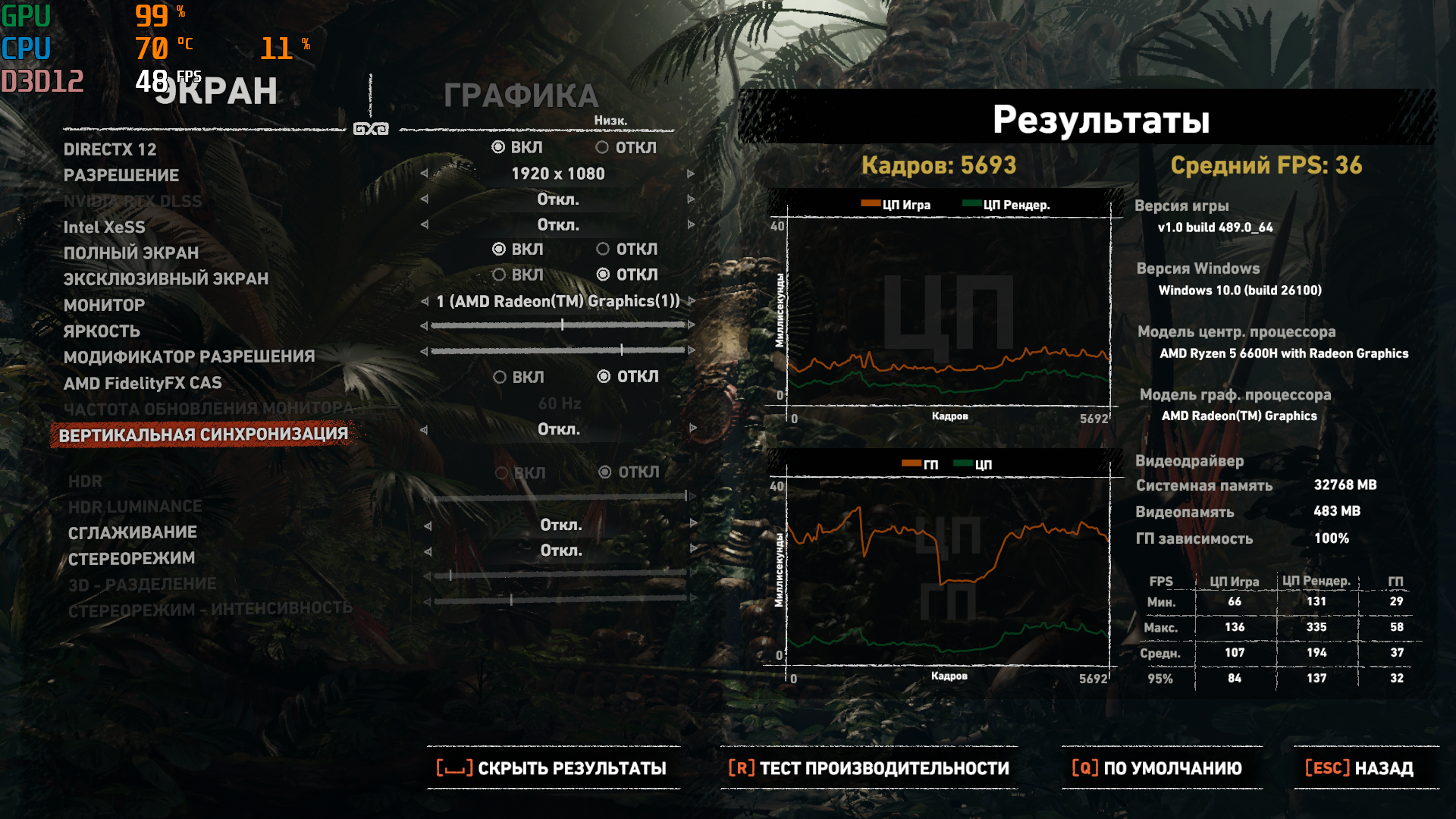 Для того, чтобы поиграть в Shadow of the Tomb Raider с разрешением Full HD пришлось также снизить настройки до низких и даже слегка уменьшить модификатор разрешения, но в итоге средние 36 FPS на встройке это что-то из разряда фантастики.