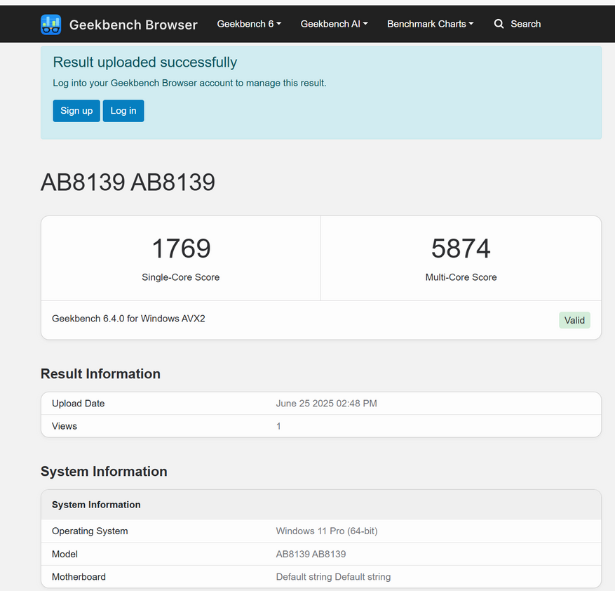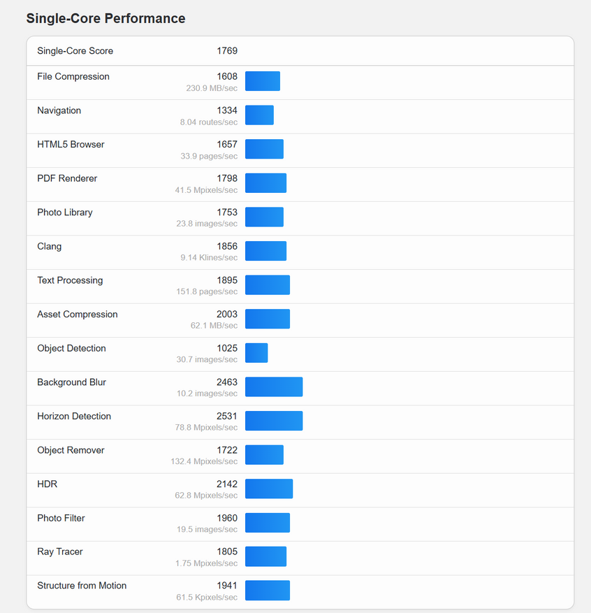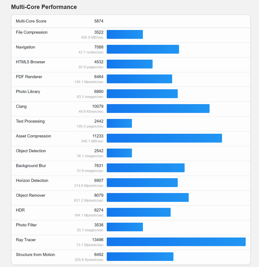 GeekBench показал 1769 баллов в одноядерном тесте и 5874 баллов при мультитесте.