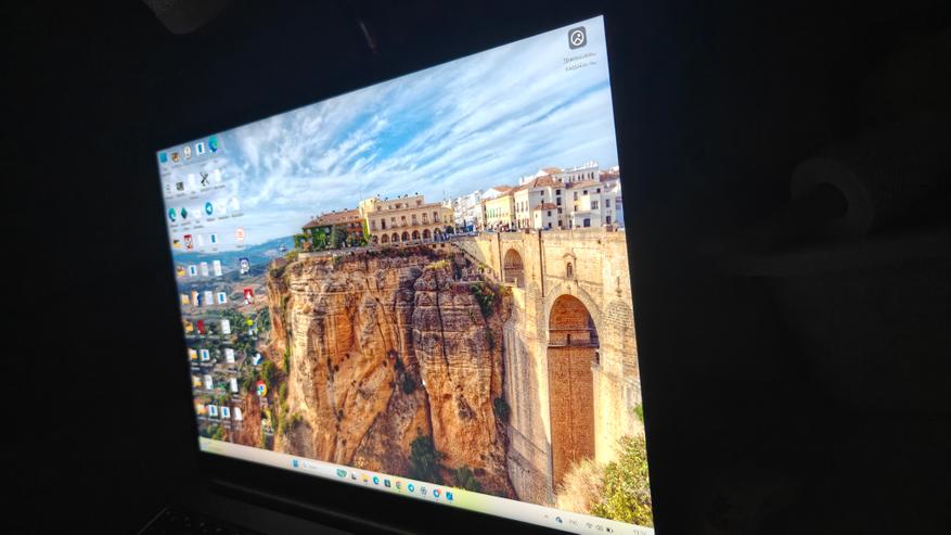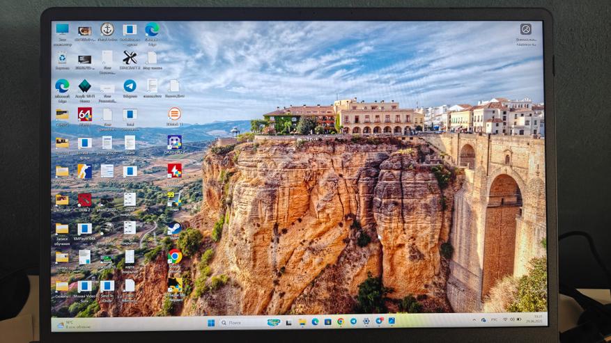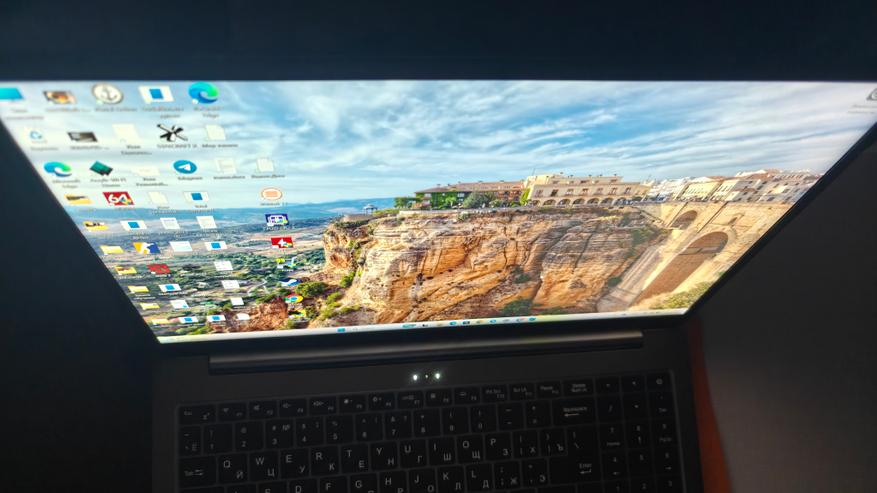 Экран на 16 дюймов хорошего качества. Матрица дает полный охват 100% цветового пространства sRGB, плюс яркость 350 нит. Этого вполне хватает для работы, а цвета и яркость не теряются при просмотре со стороны.