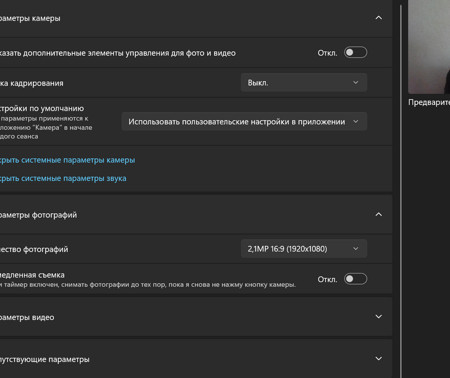 Камеры устройства способны создавать фото с разрешением 1920*1080 на 2.1Мп. Такая камера подходит для видео созвонов, но не более. Хочу отметить, что работу камеры сопровождает очень яркий индикатор. То, что камера снимает видео, пропустить не выйдет, за что мой внутренний шизофреник сказал спасибо хоть и поворчал на отсутствие физической шторки. Индикатор не только информирует о ведении съемки, но и подсветит лицо в полной темноте.