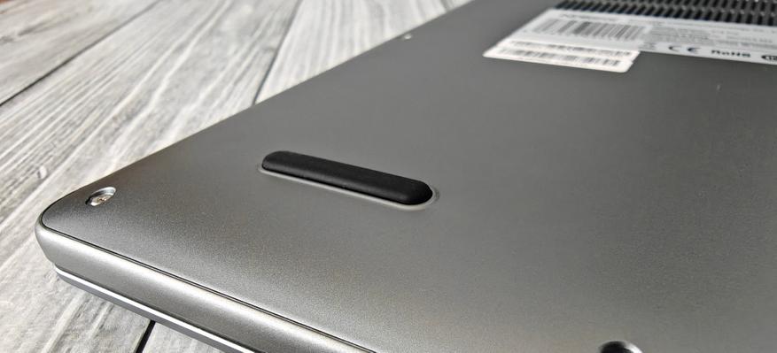Верхняя крышка из металла с надписью — логотипом бренда в углу. Больше никаких украшений нет, просто ровная металлическая поверхность. Нижняя сторона также металлическая с прорезями для вентиляции, наклейками с параметрами модели и резиновыми ножками.