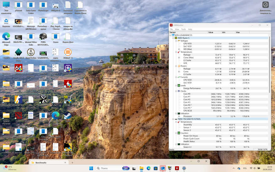 За время всех тестов температура процессора не превысила 88С. Такого уровня производительности процессора хватает для бытового использования средств редактирования фотографий и конвертации видео. Я, к примеру, использую штатные возможности Photoshop и встроенного средства обработки изображений.