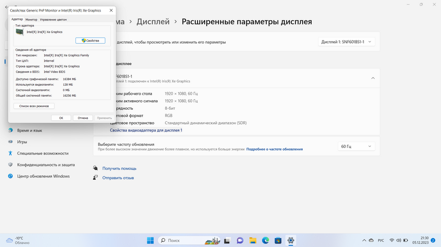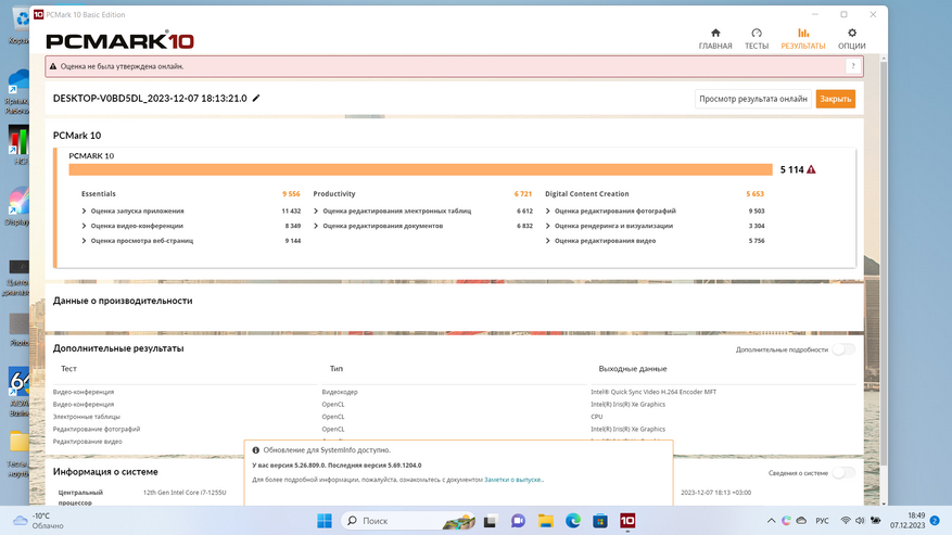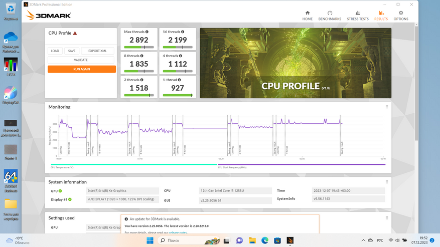 Внутри Ninkear N15 Pro трудится 10-нм процессор Intel Core i7 1255U со встройкой Intel Iris Xe Graphics 96EU и достаточной для несложной работы и некоторых развлечений производительностью. Переключение в производительный режим и подключение зарядного устройства на момент написания обзора не давало ощутимого ускорения.