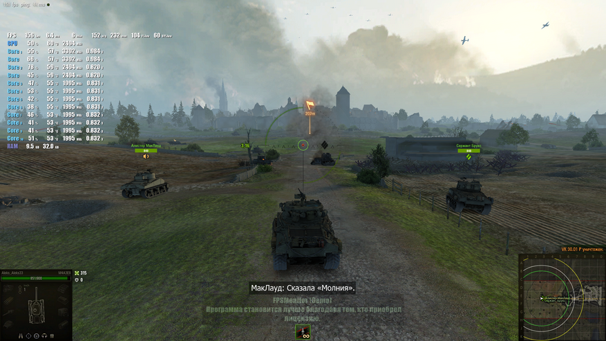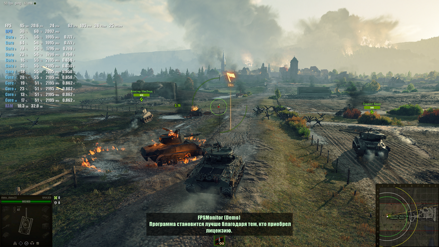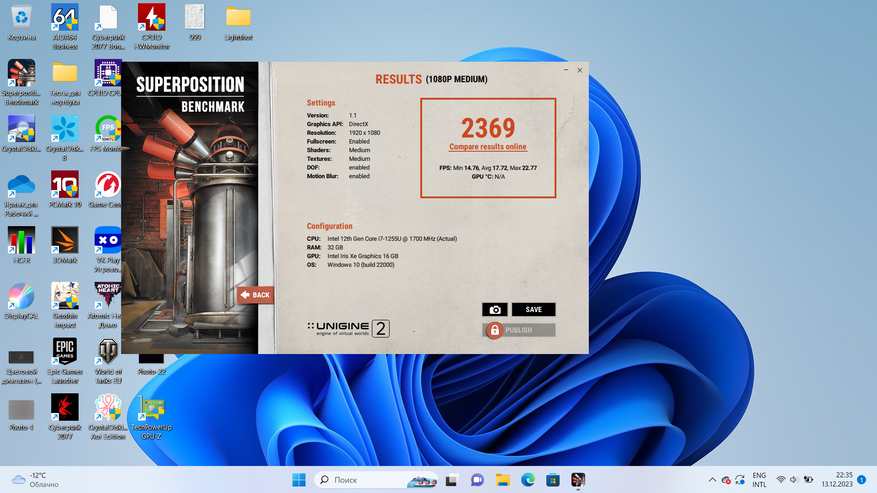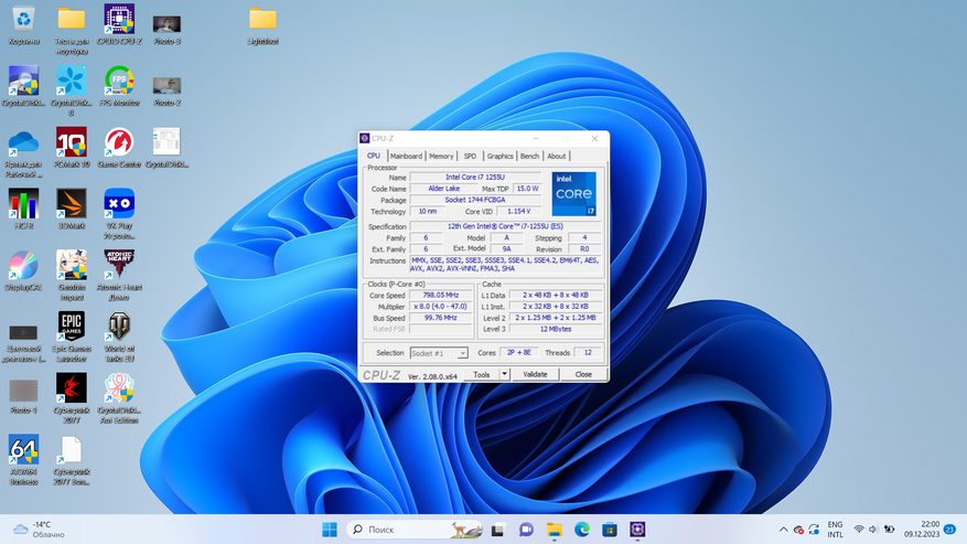 Несколько игровых тестов всё-таки стоит провести, тем более что Intel Core i7 1255U не сказать, что часто удостаивается внимания обзорщиков. Если говорить о современных играх, то часто приходится снижать до минимума настройки графики, но не всегда это помогает, что вполне ожидаемо. World of Tank тестировалась на низкой графике и в разрешении FullHD, как и все остальные игры на скриншотах ниже (Genshin Impact и Atomic Heart).