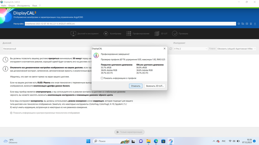 Цветовая температура — примерно 7450K. Среднее отклонение deltaE превышает нормальное значение более чем в 2 раза — можно, конечно, попробовать исправить ситуация, однако при низком цветовом охвате и калибровка дисплея не имеет большого смысла. Несмотря на описанные недостатки при обычном использовании у меня не возникает негативных эмоций при просмотре различного контента. Для профессиональной работы с графикой, конечно, такого решения будет недостаточно.