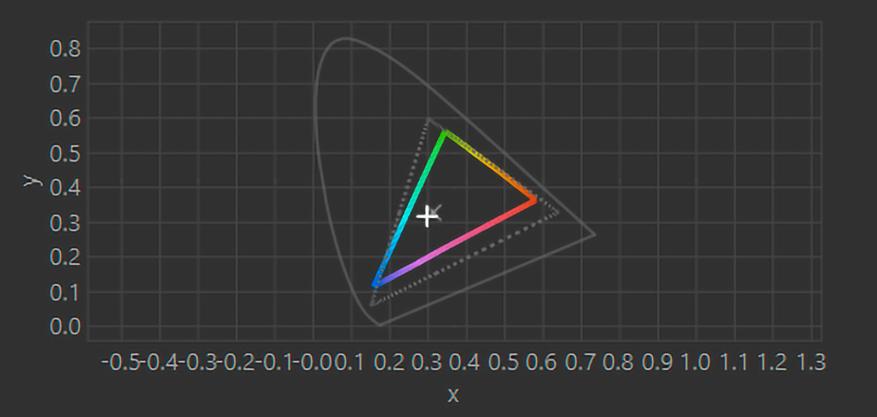По спектрам заметно сильное подмешивание компонент друг к другу, как это и бывает при подобном цветовом охвате. Пик синего же приходится на 450 нм, а значит рассчитывать на дополнительное уменьшение утомляемости глаз не стоит — по современным рекомендациям нужно чтобы пик был смещён в область 460-465 нм.