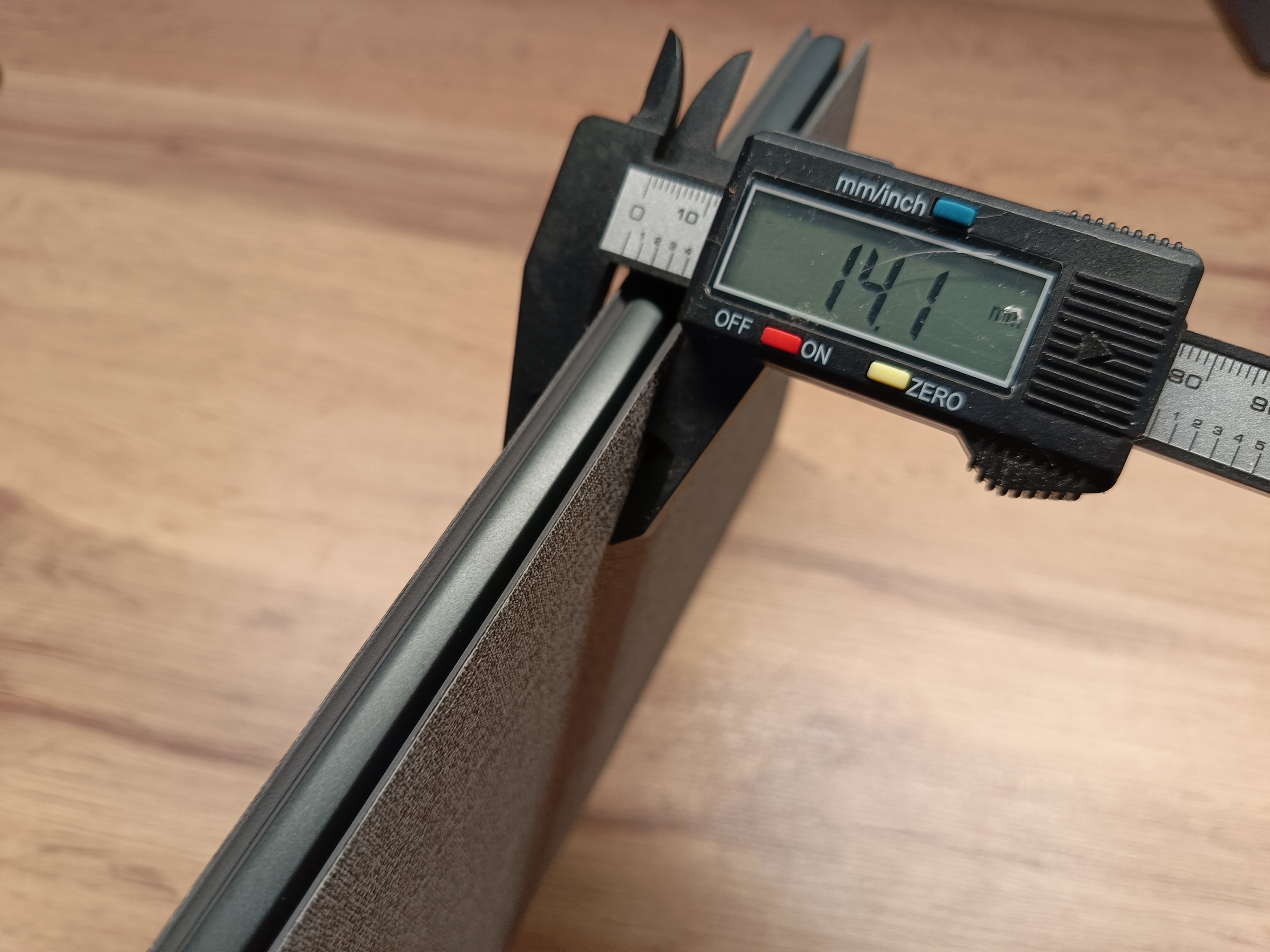 Новая модель получила боковые симметричные рамки толщиной 8,5 мм, а верхняя и нижняя рамка увеличена до 17 мм, что придаёт устройству гармоничные пропорции. Толщина без чехла составляет всего 8,6 мм, а в комплекте с защитным чехлом увеличивается до 14 мм. Вес устройства с чехлом достигает 416 грамм, без чехла — 274 грамма, что делает его одновременно лёгким и удобным для повседневного использования.