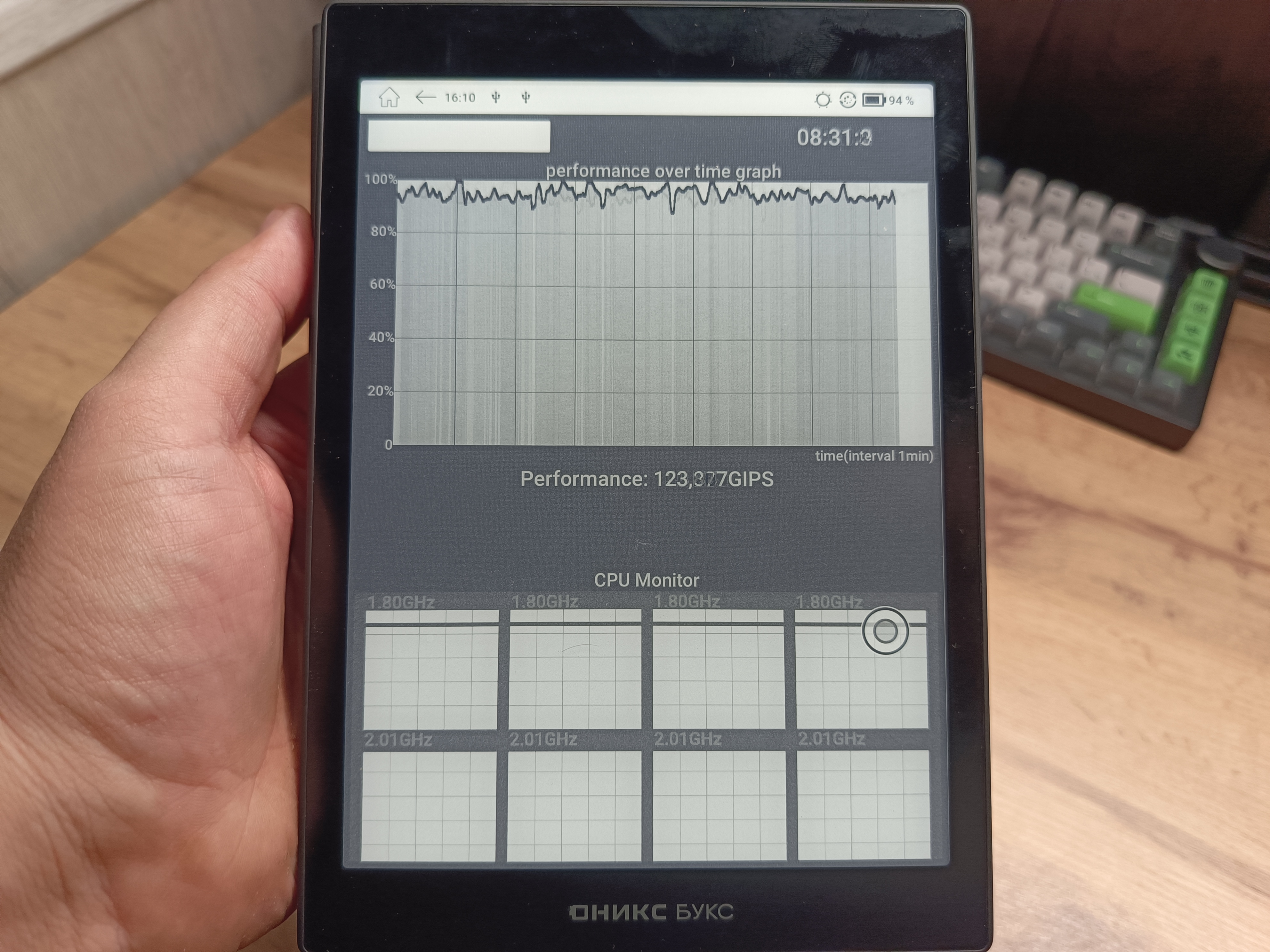Чтобы понять расположение основной платы и аккумулятора, я провёл небольшой «тест на прочность» с использованием тепловизора. Снимки показали, что основная плата находится в верхней части устройства. Во время теста температура на лицевой стороне поднялась почти до 49 °C, а на обратной — до 38 °C. Эти данные дают представление о распределении тепла и поведении устройства при интенсивной нагрузке. В реальности такой нагрузки, естественно, на процессор не поступает, поэтому при чтении или серфинге книжка остается холодной.