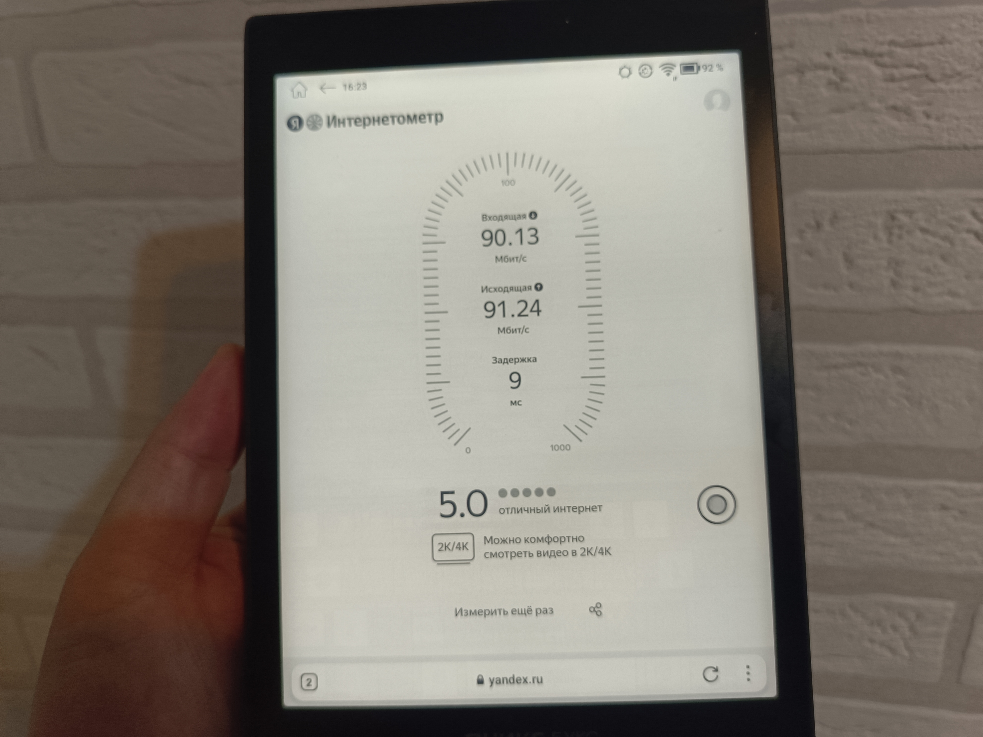 Так как устройство построено на базе Android 11, на него можно устанавливать любые приложения. Для этого уже предустановлены Rustore и Play Market, поэтому никаких ограничений в использовании нет. Для комфортной работы с интернетом предусмотрен двухдиапазонный Wi-Fi модуль. При частоте 2,4 ГГц вблизи роутера скорость соединения составляет около 50-60 Мбит/с, а на частоте 5 ГГц она увеличивается почти в два раза — до 90 Мбит/с. При этом стоит учитывать, что с увеличением расстояния от роутера скорость уменьшается. Тем не менее, таких показателей вполне достаточно для загрузки книг из облака, проверки электронной почты или комфортного чтения новостей в браузере.
