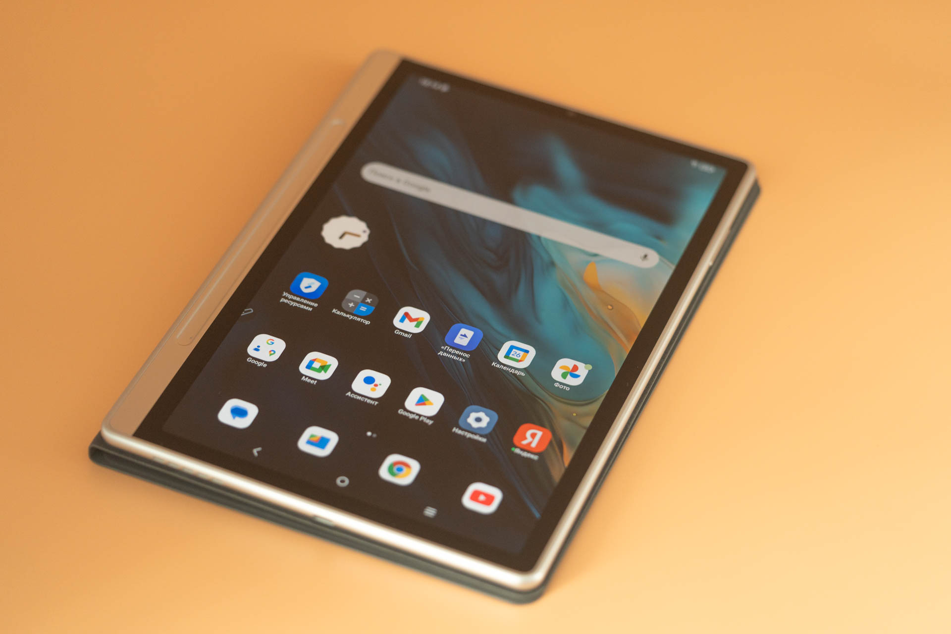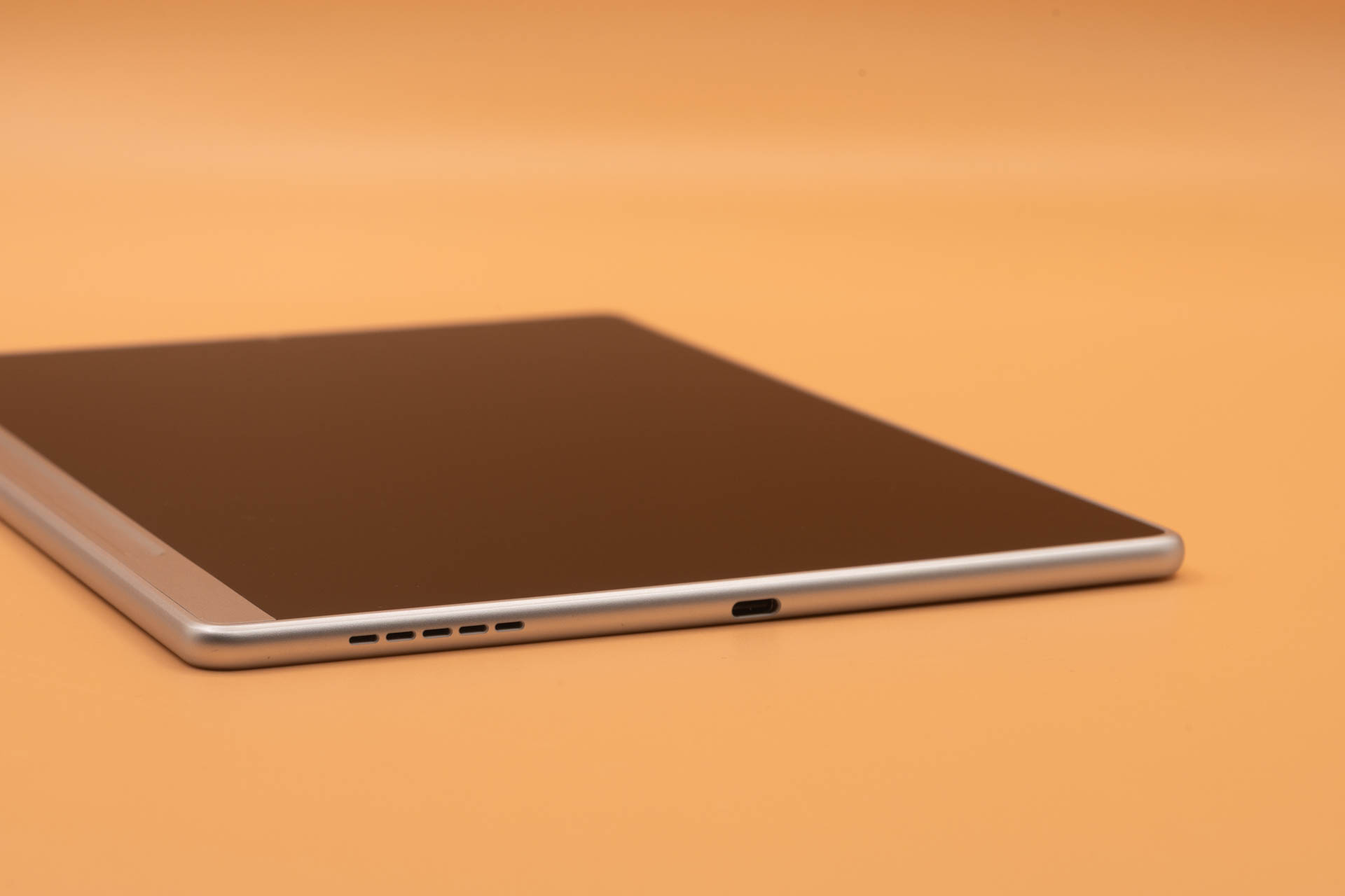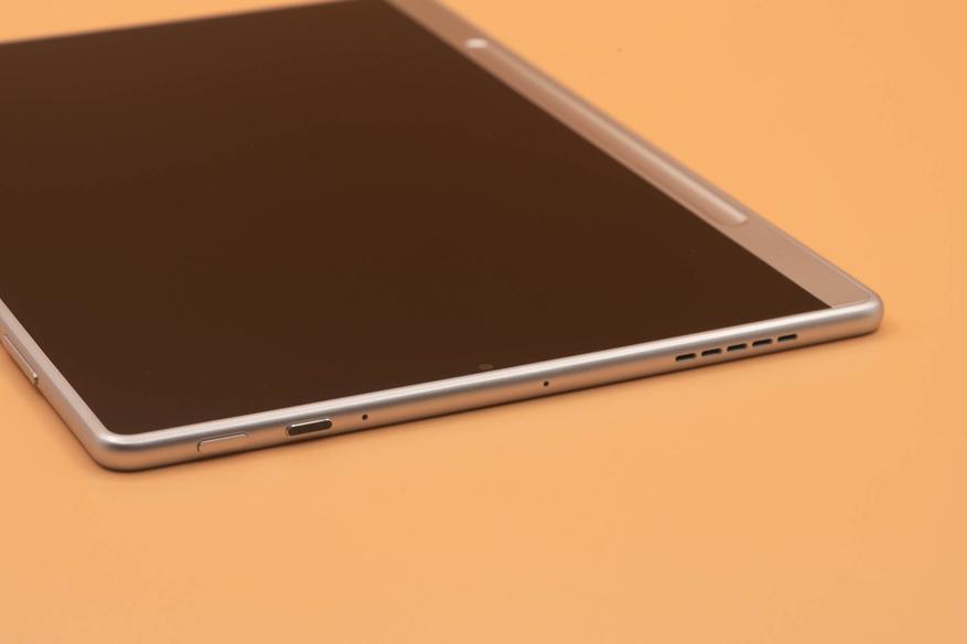 В планшете отсутствуют разъем для карт microSD, модуль сотовой связи и стандартный 3.5-миллиметровый аудиовыход. Для подключения устройств предусмотрен только порт USB-C, который, однако, поддерживает внешние накопители, но на ограниченной скорости USB 2.0.