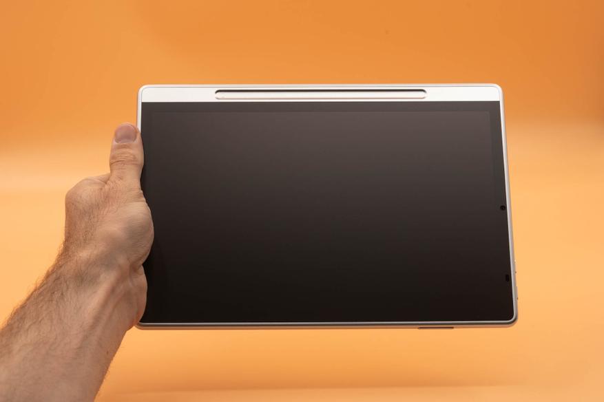 Габариты устройства оптимальны с точки зрения мобильности, но из-за размеров корпуса удержание одной рукой может быть затруднительным. Однако, при использовании двумя руками или размещении планшета на коленях с опорой, этот нюанс нивелируется удобством и многофункциональностью при чтении и работе.