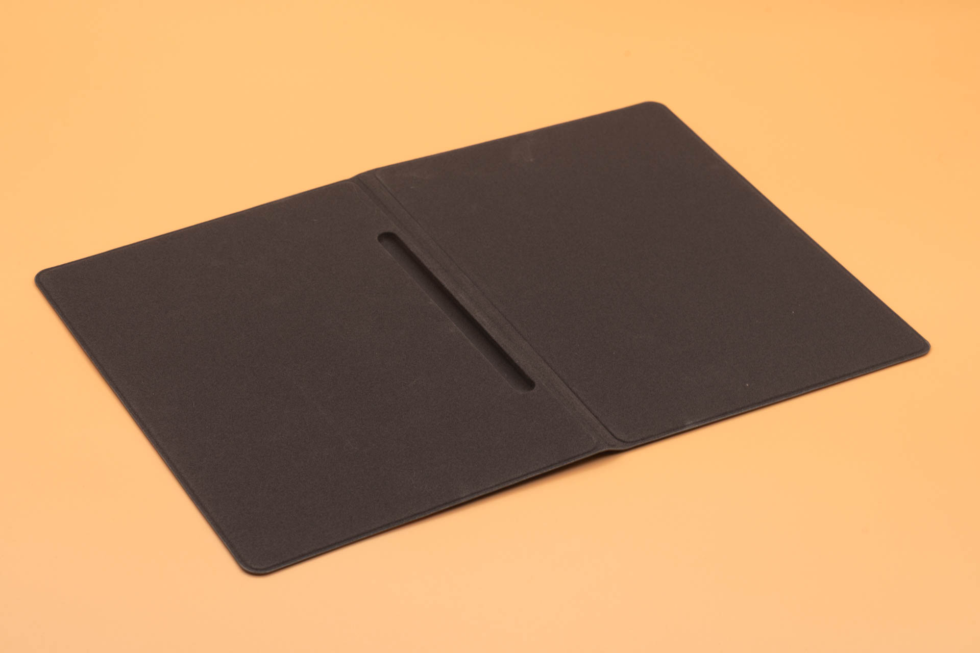 При рассмотрении чехла взгляд невольно падает на выступающий элемент, который образует интегрированный отсек для стилуса. Подобная конструкция, вероятно, является оптимальной для сохранения компактности и надежной фиксации стилуса (по сравнению с внешним магнитным креплением), но может сказаться на удобстве транспортировки XPPen Magic Note Pad в сумке или рюкзаке.