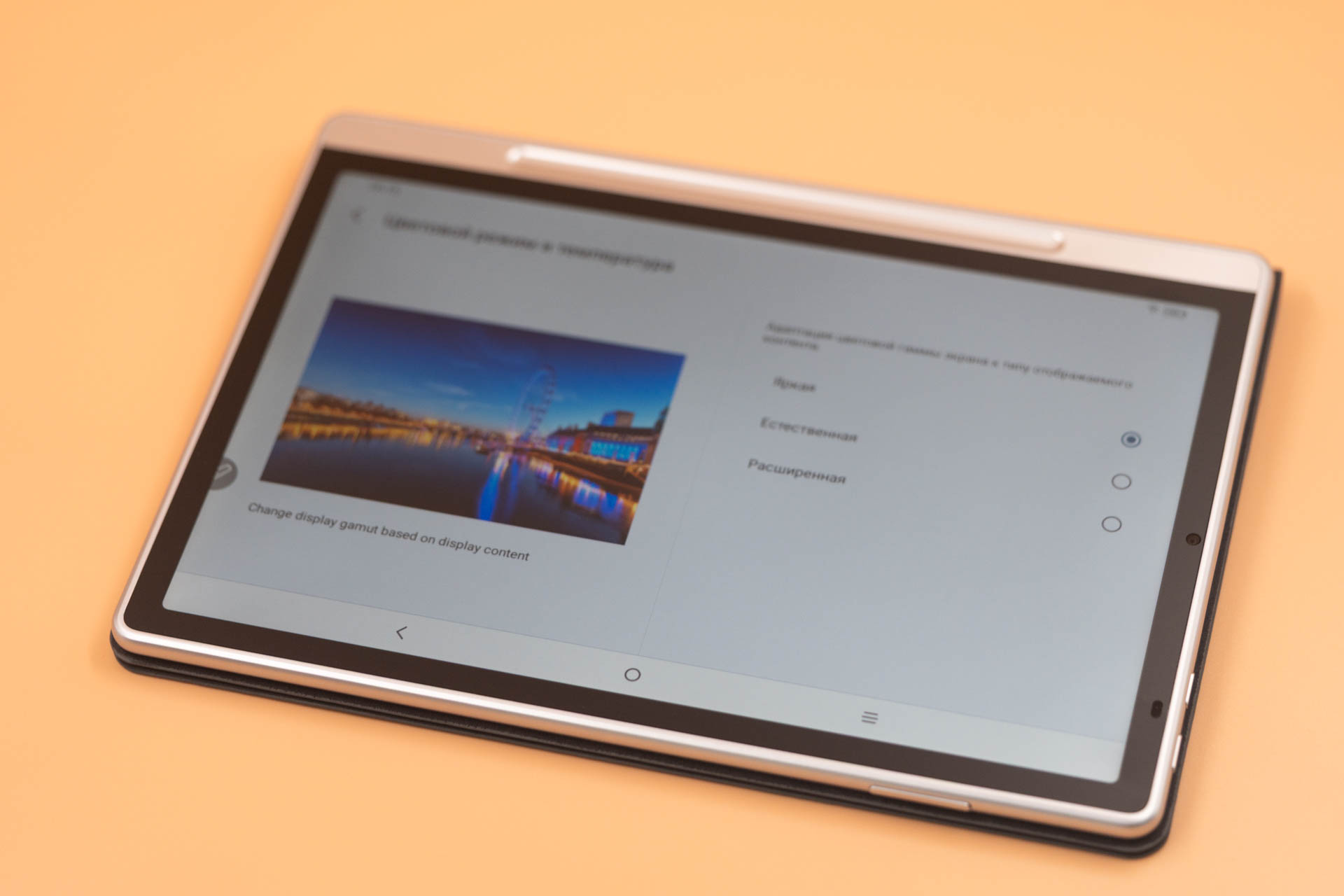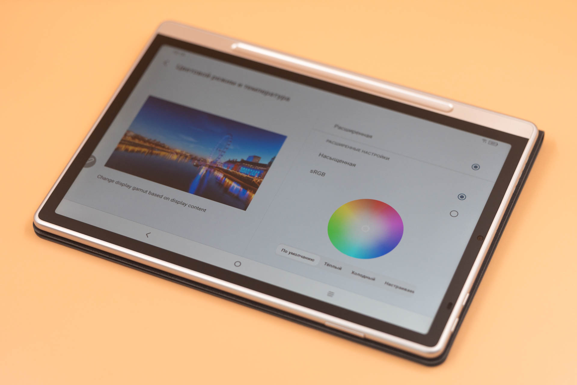 Пиковая яркость дисплея достигает 400 нит. Благодаря эффективному антибликовому покрытию, информация остается читаемой даже под прямыми солнечными лучами, несмотря на не самую высокую яркость. Минимальный уровень яркости позволяет комфортно использовать планшет в темное время суток. Автоматическая регулировка яркости, основанная на данных датчика освещенности, функционирует корректно, адаптируя яркость к окружающему освещению.