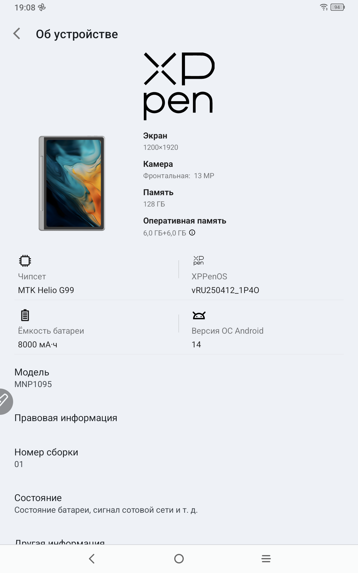 Планшет Magic Note Pad функционирует на базе ОС Android 14 с кастомизированной оболочкой XPPen. В отличие от стандартной версии Android, здесь имеются специализированные приложения для рисования и заметок, а также модифицированный дизайн некоторых элементов пользовательского интерфейса. При первоначальной загрузке пользователь имеет возможность выбрать стиль главного меню. Система не обременена предустановленным «мусорным» ПО, но включает в себя сервисы Google, в том числе Play Store.