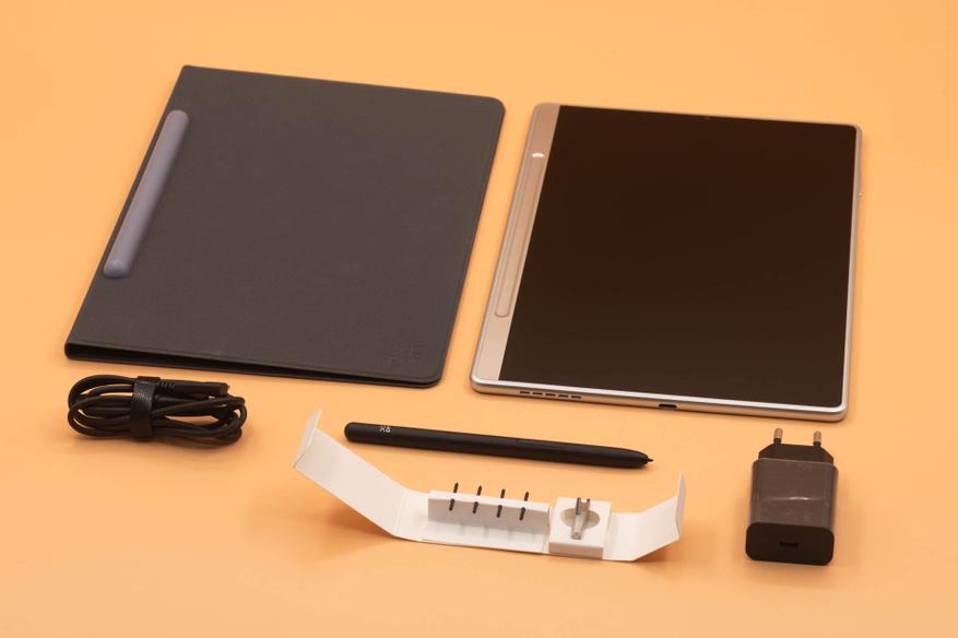 Комплект поставки к планшету расширен за счет стилуса X3 Pro Pencil 2, сменных наконечников для стилуса, защитного чехла, зарядного устройства с кабелем USB-A/USB-C и документации.