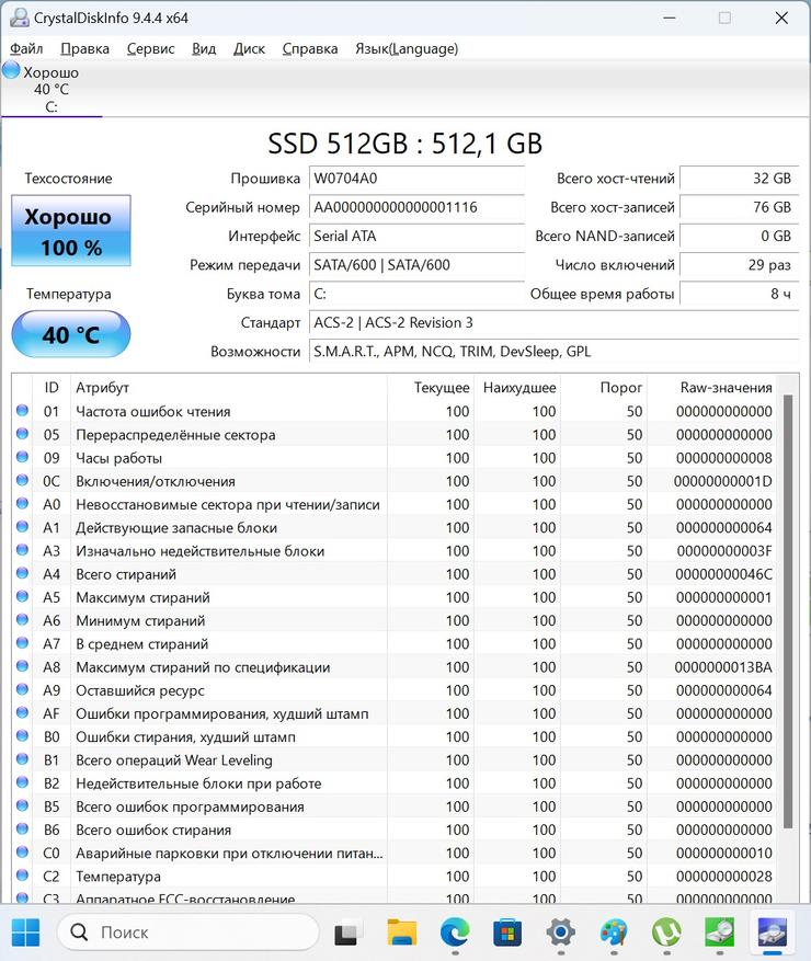| Постоянная память | SSD NVMe, 512 ТБ (SATA3.0) |