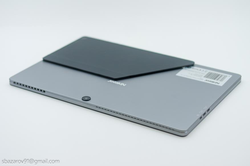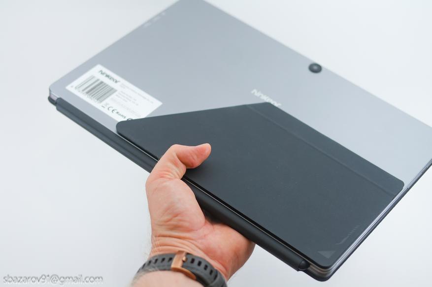 Ninkear T40 произвел на меня хорошее впечатление с точки зрения реализации: если вам нужен планшет с поддержкой мультитач, его достаточно просто отсоединить от клавиатуры. Это удобно при просмотре контента, участии в конференциях или презентациях — клавиатура не всегда требуется. Если же потребуется работа с клавиатурой, Ninkear предлагает два варианта: использование вместе с планшетом благодаря магнитам или работа на расстоянии через Bluetooth.