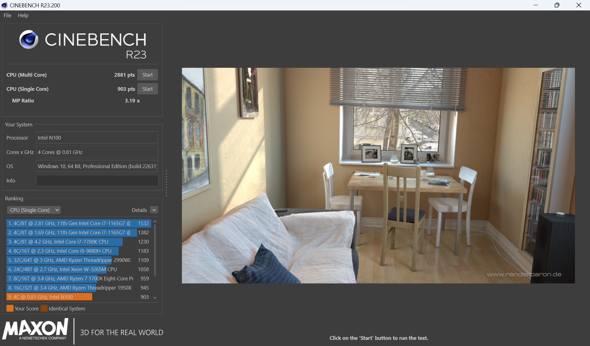 Если сравнивать общую производительность Ninkear T40 с Intel N100 и 14-дюймовым ноутбуком-трансформером Ninkear N14 с Intel N95 из предыдущего обзора, то прирост производительности составляет 9,49% (1159 против 1269 очков) при почти одинаковых характеристиках. Однако N95 имеет более высокий TDP — 15 Вт против 6 Вт у N100, что предполагает менее продолжительное время работы от батареи.